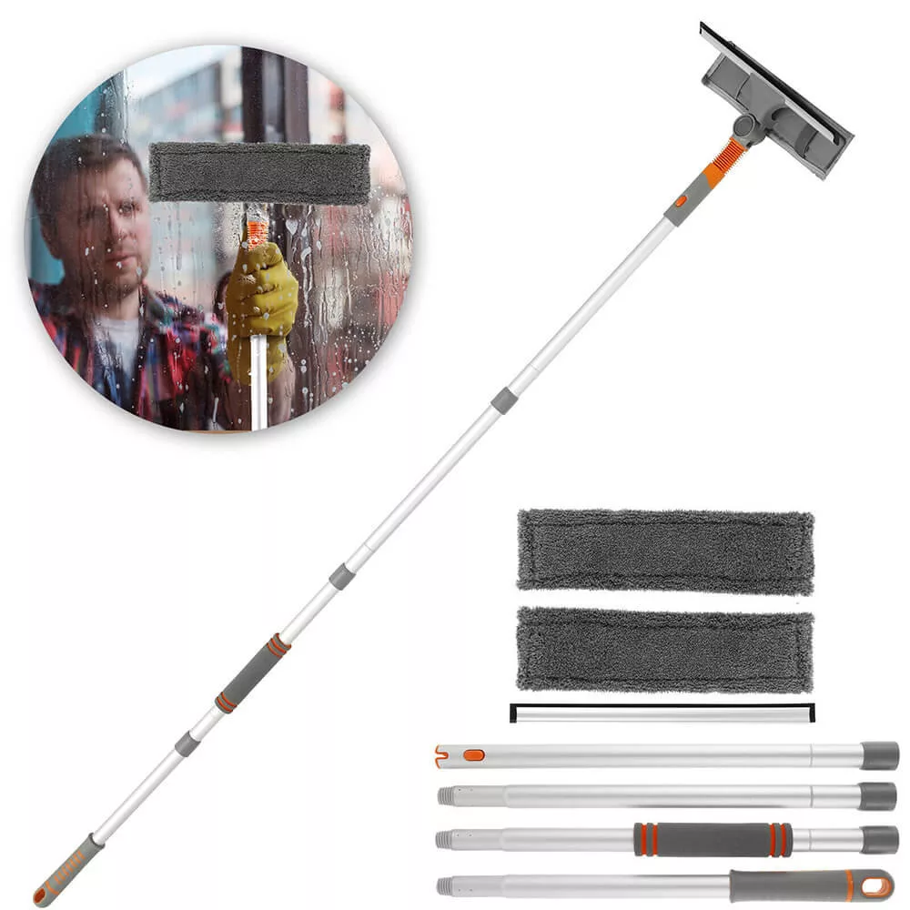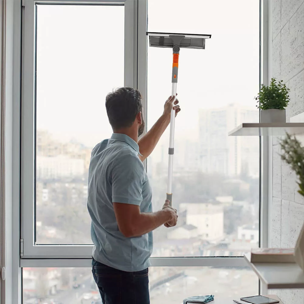 Az akár 163 cm hosszúságú teleszkópos nyéllel könnyedén elérheted a magasabb ablakokat, csempéket vagy más sima felületeket. Az előre és hátra hajlítható, 180 fokban dönthető fej tovább növeli a szett sokoldalúságát és kényelmes használatát.