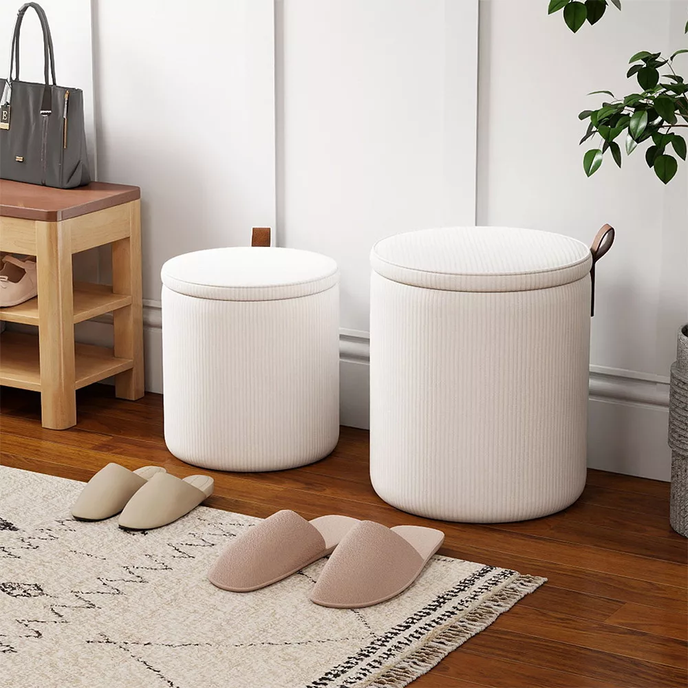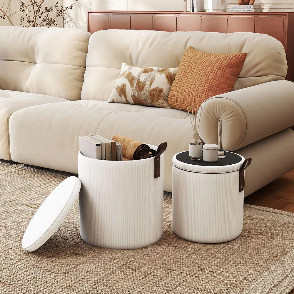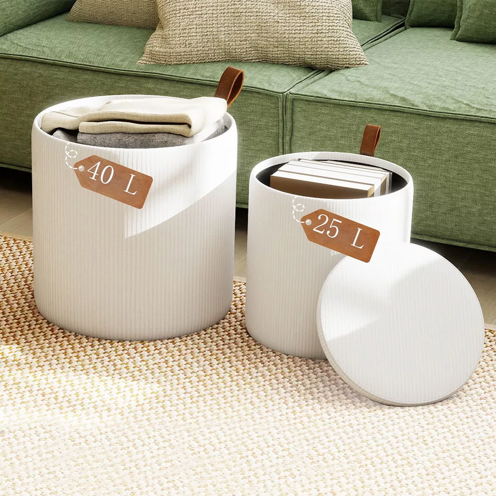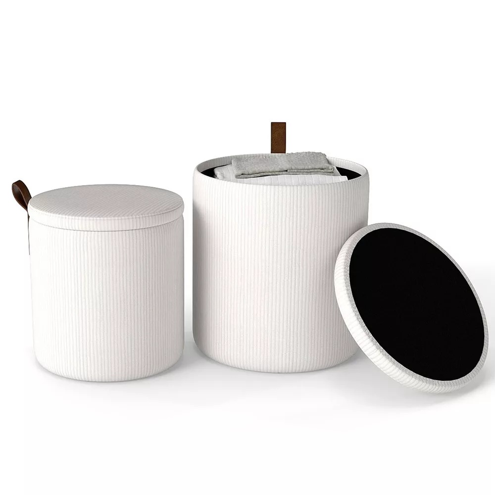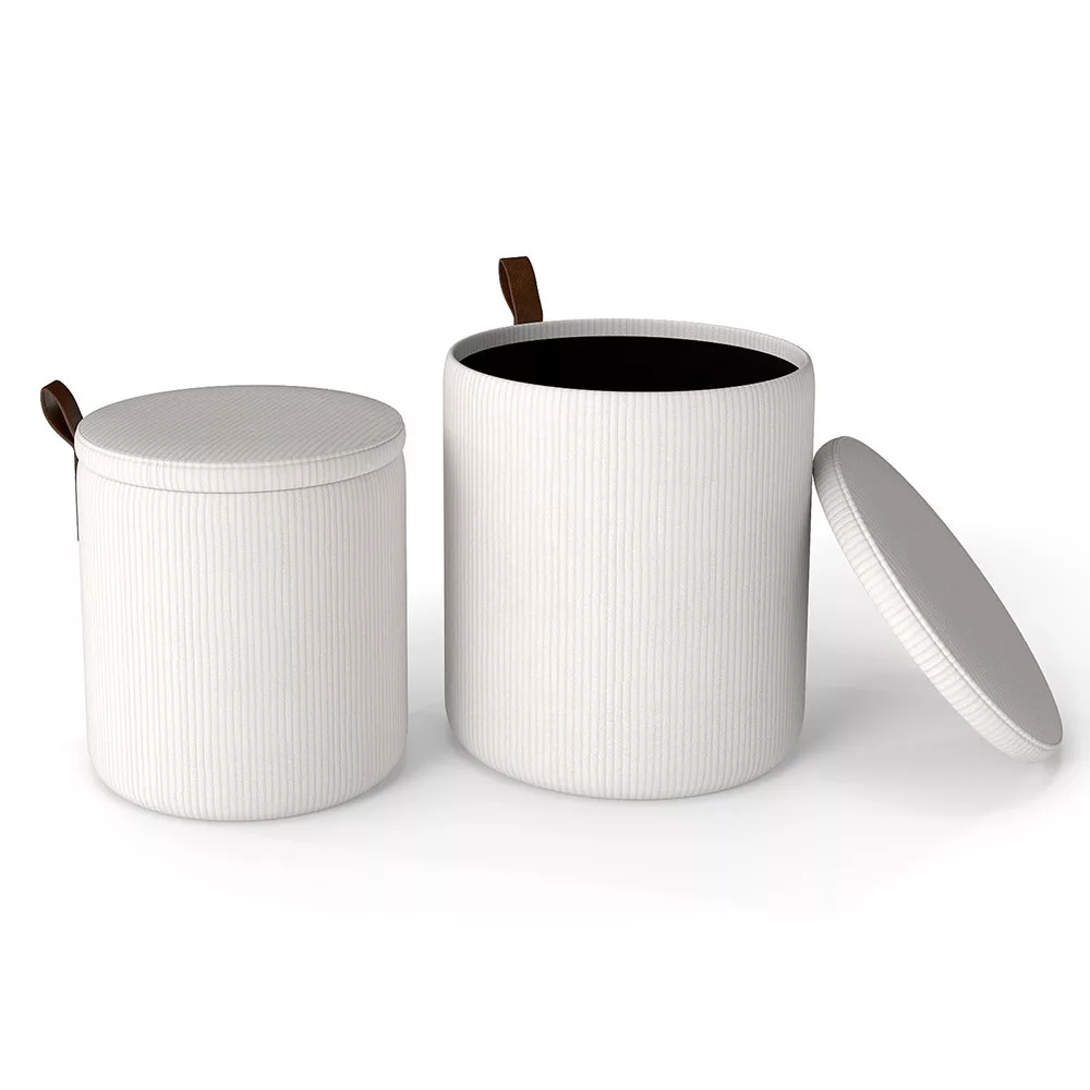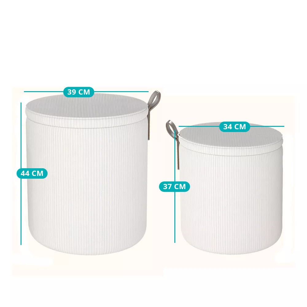 A két különböző méretű tároló puff ideális megoldás, ha gyorsan szeretnél ülőhelyet teremteni, miközben elrejted a takarókat, párnákat vagy egyéb apróságokat.