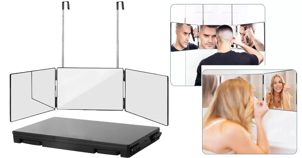 A három tükrös kialakítás biztosítja a tökéletes rálátást minden szögből, így könnyedén ellenőrizheted a frizurád vagy sminked minden apró részletét. Az oldalsó panelek kihajthatóak, hogy teljes képet kapj önmagadról.