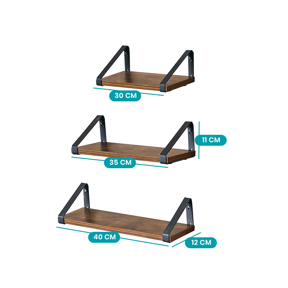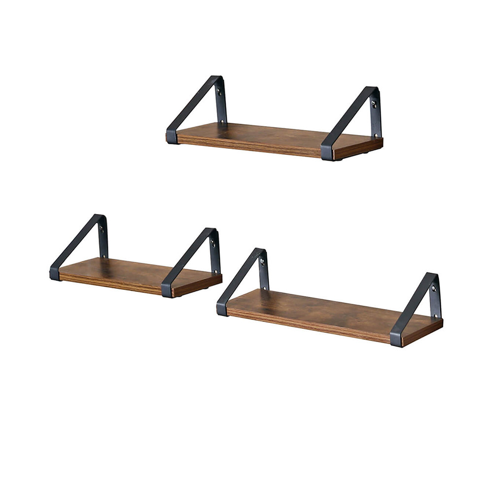 Ez a 3 darabos falra szerelhető könyvespolc szett tökéletes választás, ha szeretnéd feldobni otthonod hangulatát. A rusztikus barna polclapok és a fekete fémkeret harmonikus kombinációja karaktert visz a nappaliba, hálóba vagy irodába.