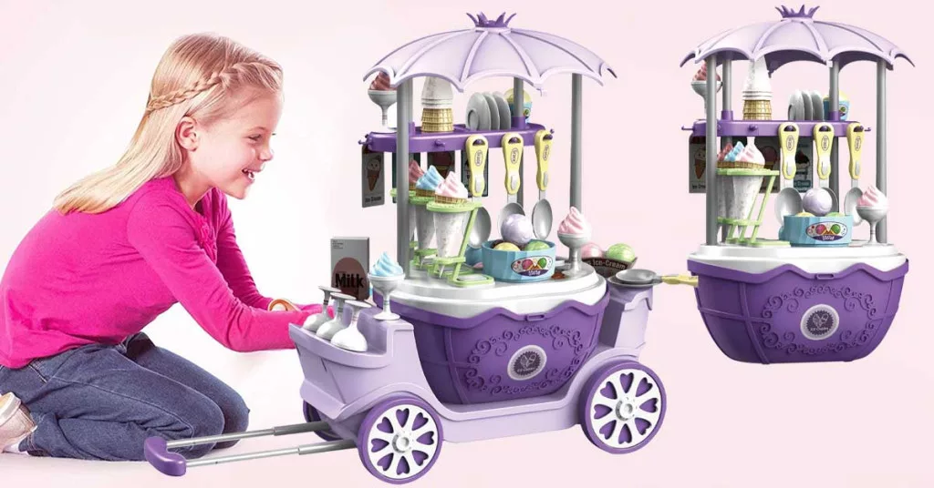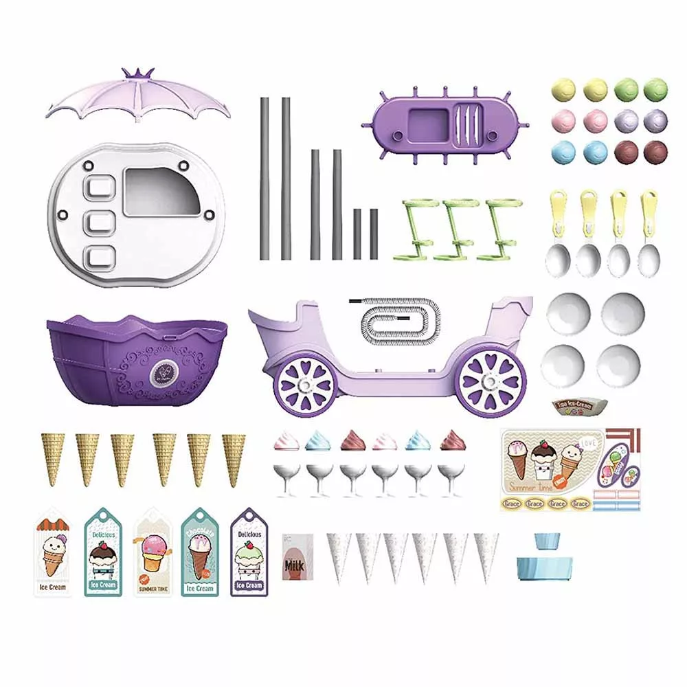 A fagyiskocsi színes, valósághű kiegészítői – például játék fagyigombócok, tölcsérek, tányérok és kanalak – gazdag szerepjátékot tesznek lehetővé. Ezek segítségével a gyermekek képzeletbeli fagylaltárusokká válhatnak, miközben fejlődnek kreativitásuk és szociális készségeik.