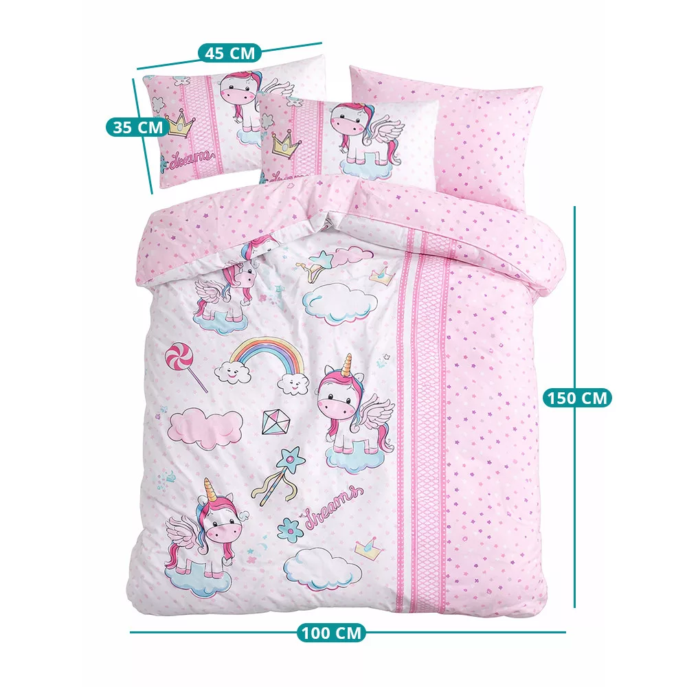 A kedves, játékos motívumok barátságos karaktert adnak az ágyneműnek, így nemcsak praktikus, hanem dekoratív eleme is a gyerekszobának. A minták élénkségét a tartós textilnyomás segít megőrizni.