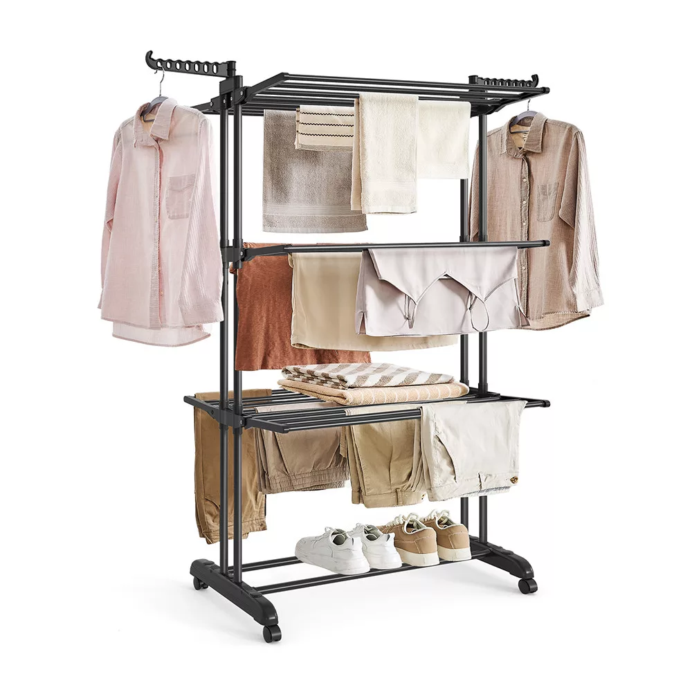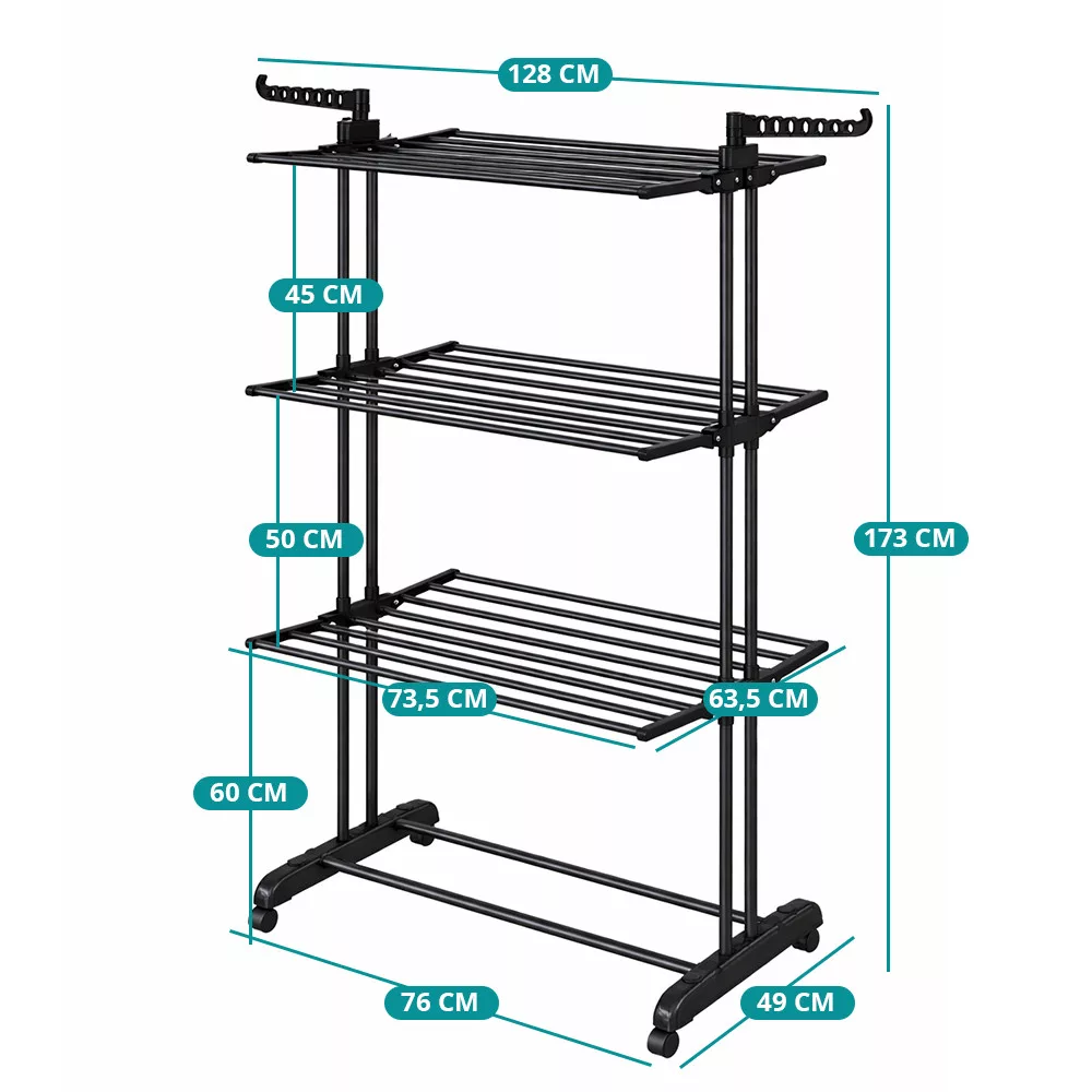 A több szintes kialakítás lehetővé teszi, hogy egyszerre nagy mennyiségű ruhát száríts. A különböző szintek ideálisak törölközők, pólók, nadrágok vagy akár ágyneműk számára is.