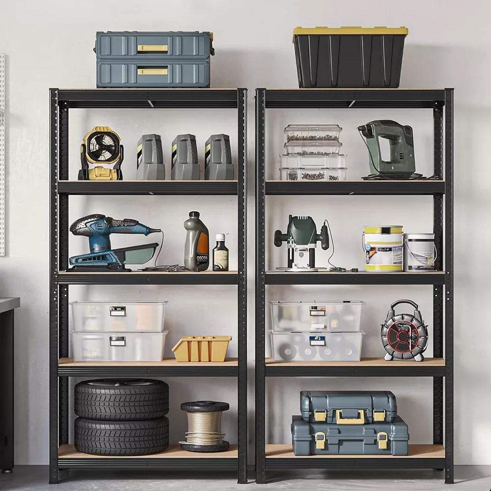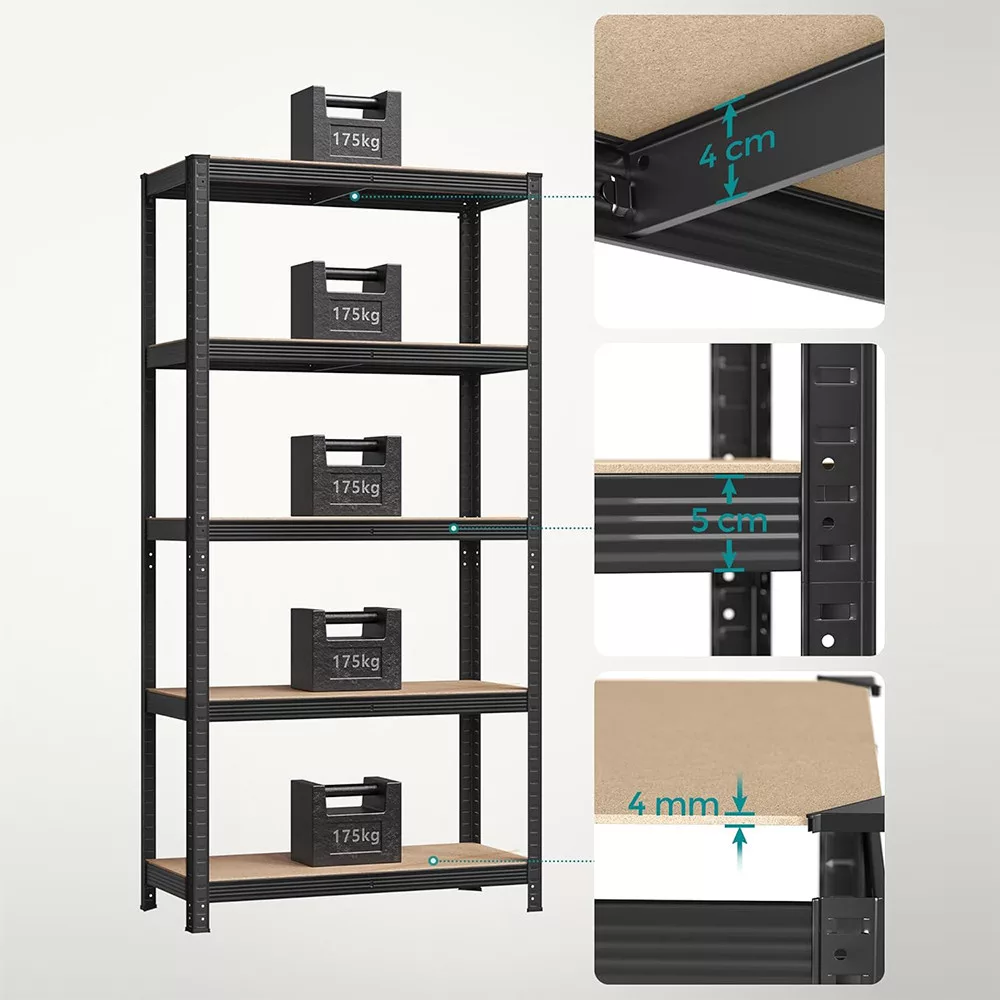 A 2 darabos, 5 szintes acél polcrendszer szett ideális választás garázsba, műhelybe vagy akár raktárba. Minden szint 175 kg-ig terhelhető, így nagyobb szerszámokat, dobozokat vagy festékeket is biztonságosan elhelyezhetsz rajta.