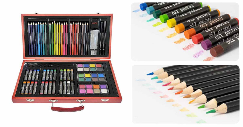 Ez a rajzkészlet tartalmazza az összes alapvető eszközt, amelyre egy fiatal vagy kezdő művésznek szüksége lehet. A 24 db színesceruza és 24 korongos vízfesték élénk színek széles skáláját kínálja, míg az olajpasztell kréták selymes textúrája ideális különleges művészi hatások eléréséhez.