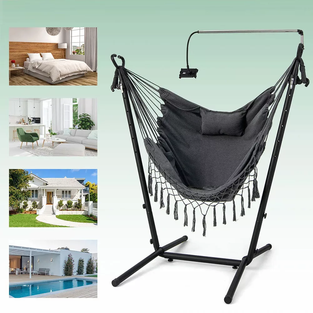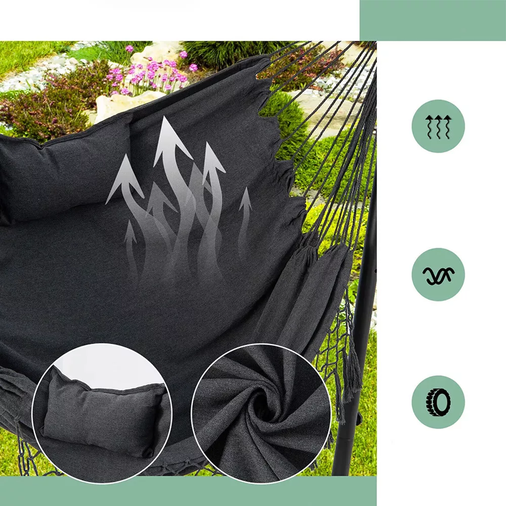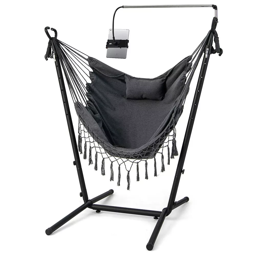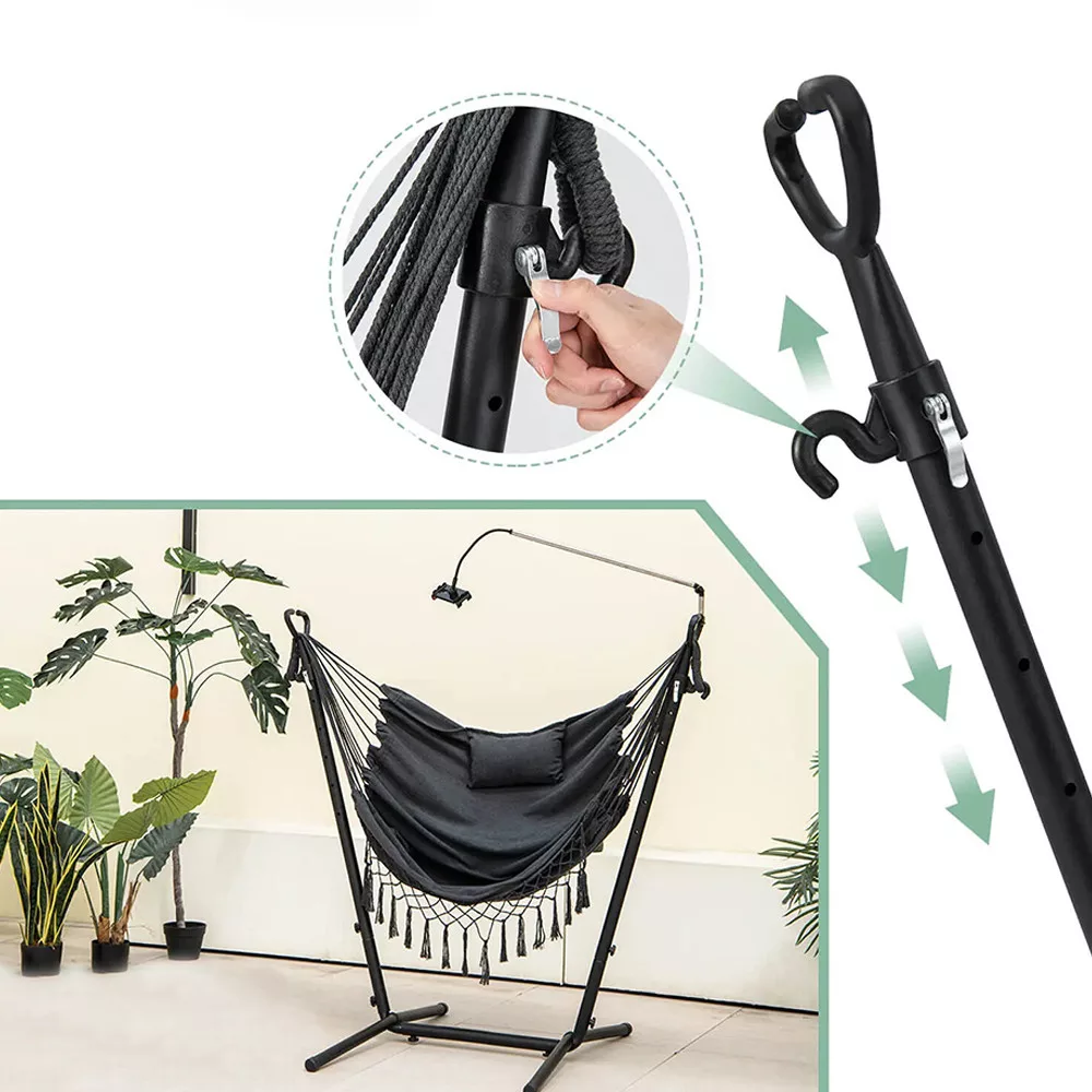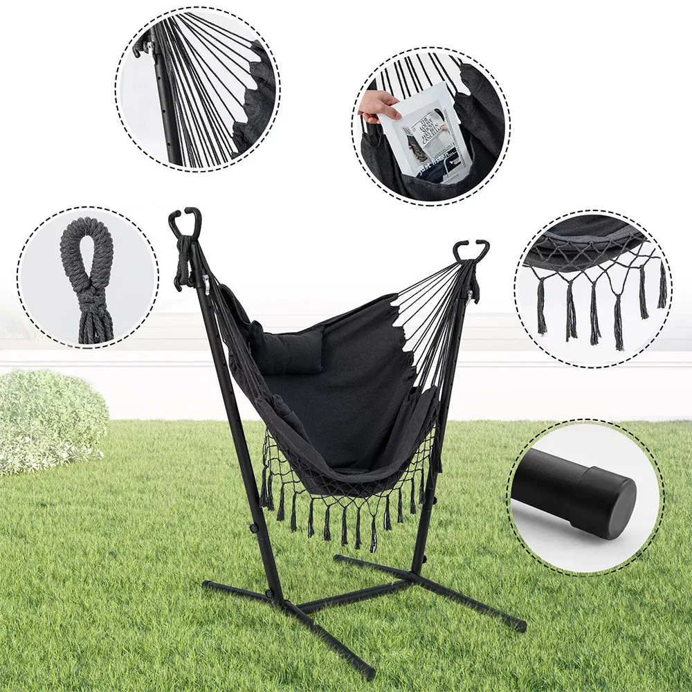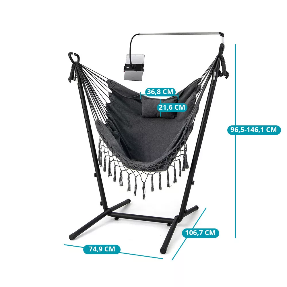 A gyorskioldós kampóknak köszönhetően a függőszék 6 különböző magassági szintre állítható. Könnyedén igazítható az igényeidhez, akár pihenéshez, akár relaxáláshoz használod.
