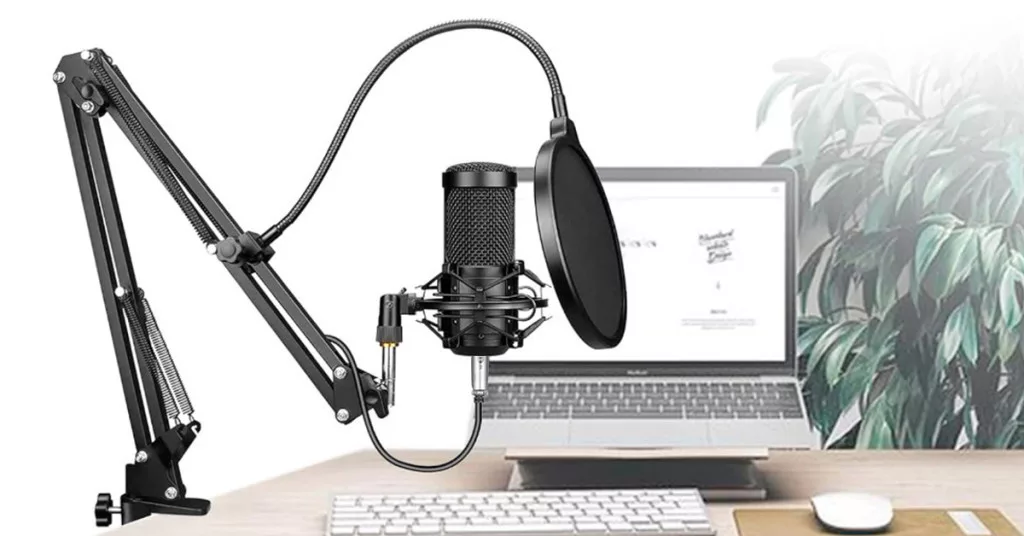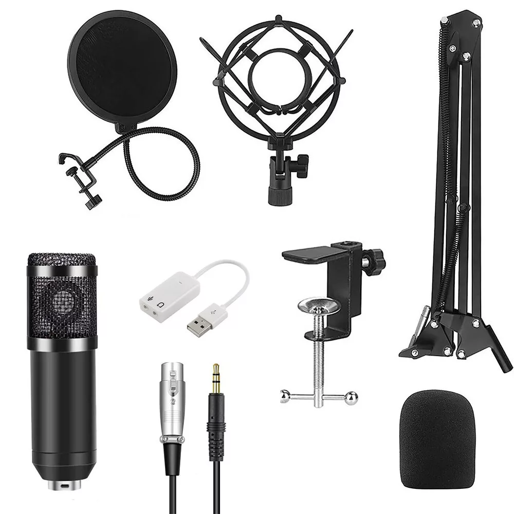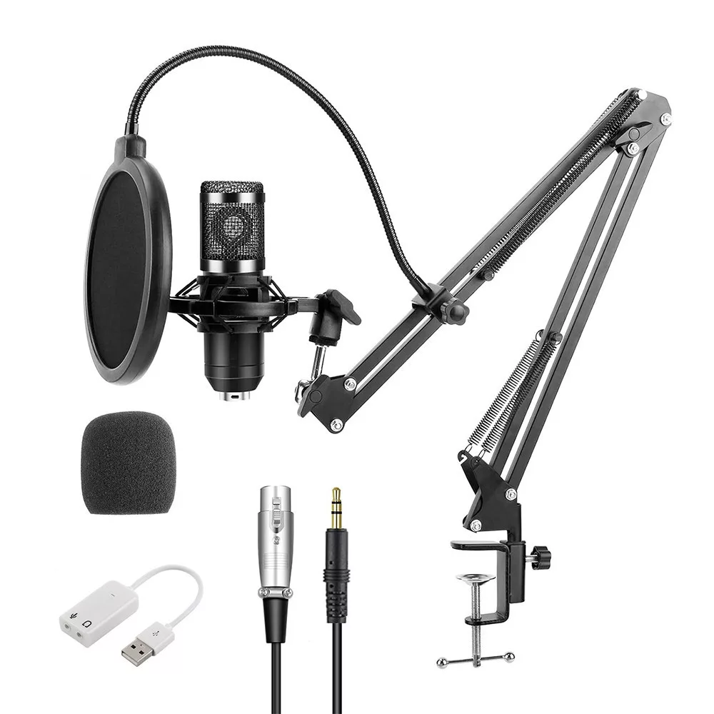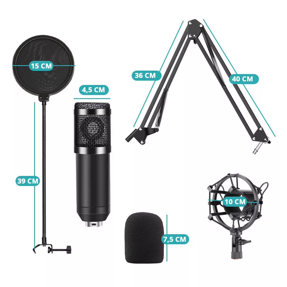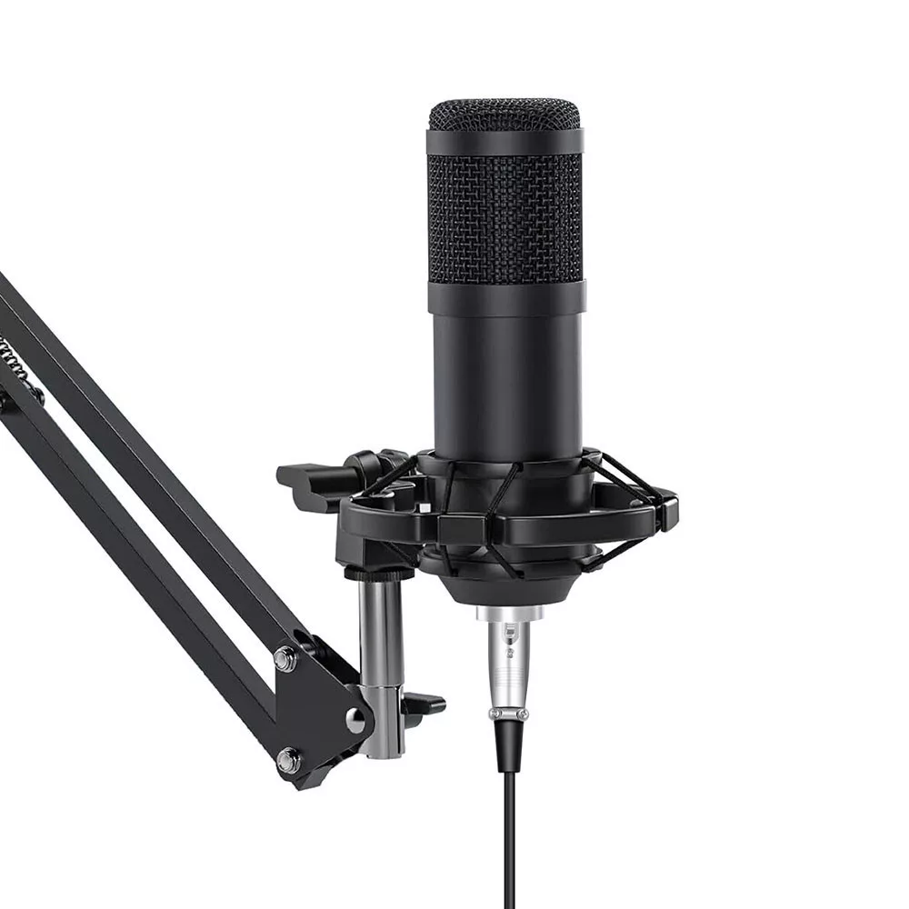 A mikrofonhoz mellékelt tartozékok – többek között popfilter, szélfogó, shock mount és USB hangkártya – biztosítják a zörejmentes, stabil felvételt. Az állítható fém kar könnyen rögzíthető az asztalra, így ergonomikusan beállítható a legjobb hangzás érdekében.