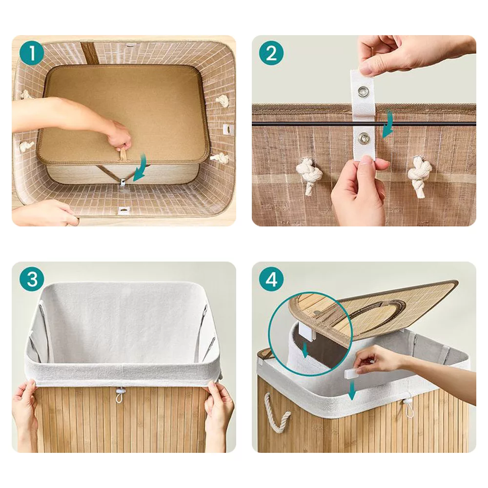 17 mm széles bambuszlécek és fémváz garantálják a stabilitást akár 15 kg-ig. Használaton kívül a kosár egyszerűen összecsukható, így kis helyen is tárolható.