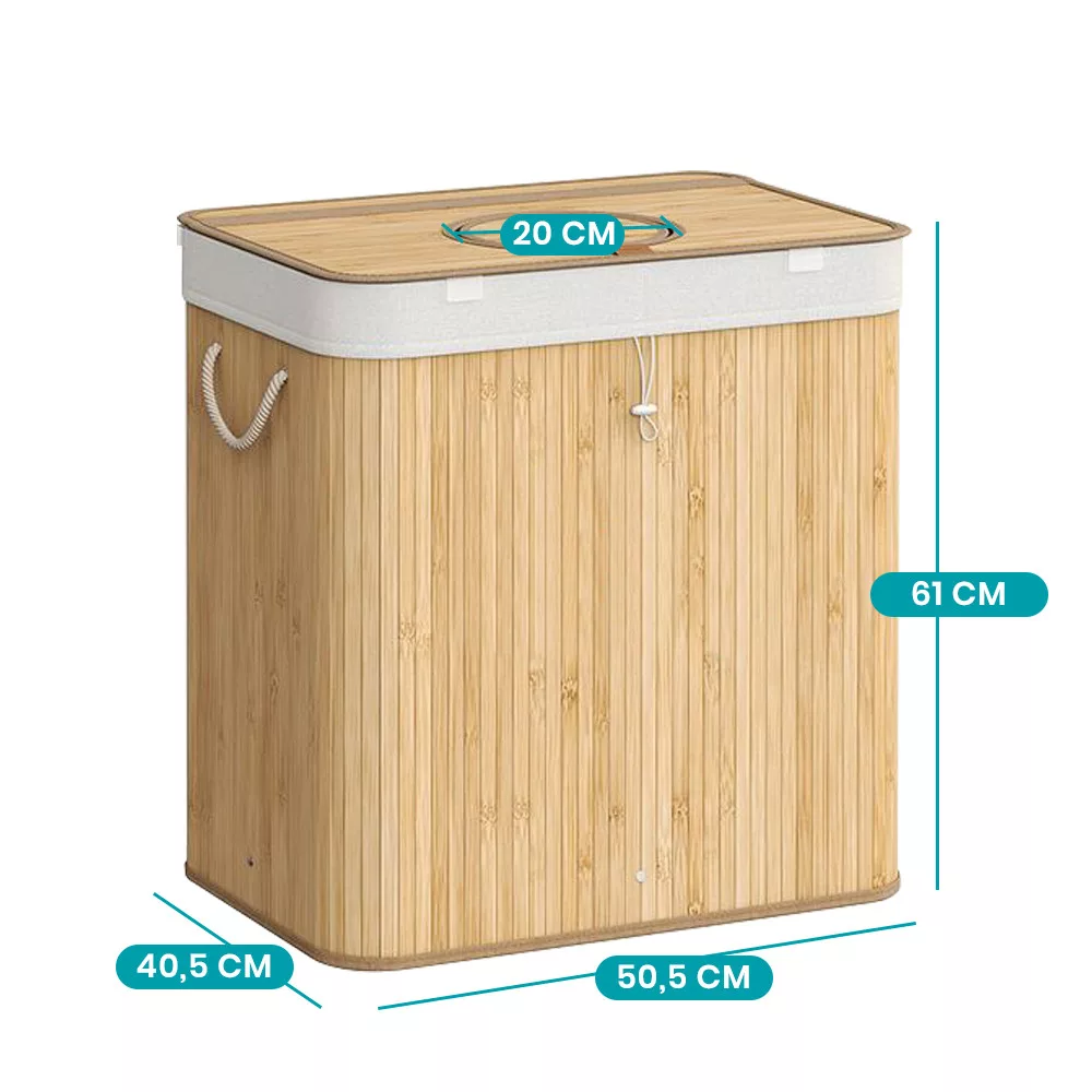Ez a 120 literes bambusz szennyestartó nemcsak praktikus, hanem dekoratív kiegészítője is lehet otthonodnak. A természetes árnyalat és a sima felület harmonikusan illeszkedik a modern vagy rusztikus fürdőszobába, háztartási helyiségbe vagy erkélyre.