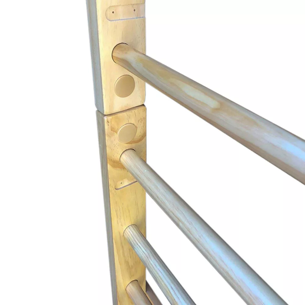 Válassza ezt a tartós, lakkozott fenyőből készült bordásfalat, hogy otthonában vagy edzőtermében biztonságos és sokoldalú sporteszközzel gazdagítsa edzés- vagy mozgásfejlesztési programját!