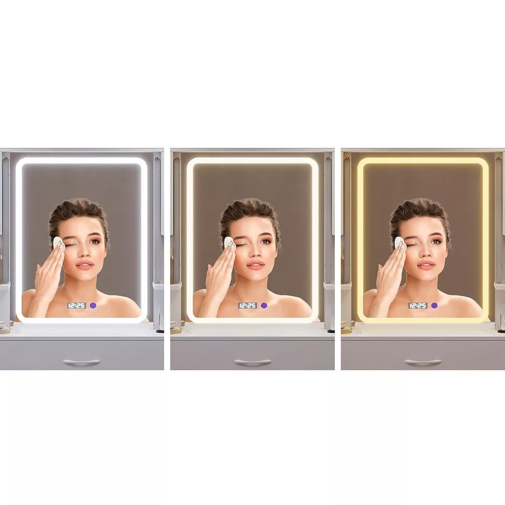 Az asztal tágas asztallapja bőséges helyet biztosít minden szükséges kozmetikai termék, ékszer vagy személyes tárgy elhelyezésére. Könnyen hozzáférhető felületén kényelmesen elrendezheted a mindennapi használatban lévő eszközeidet, így a készülődés gyorsabb és rendezettebb lehet.