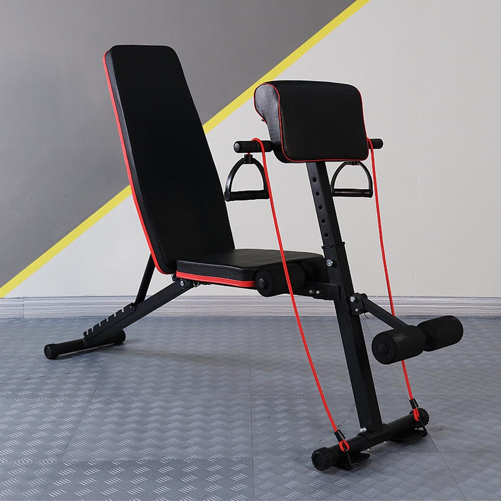 Az állítható háttámlának köszönhetően többféle gyakorlat is végezhető kényelmes pozícióban. Az erősítő gumiszalaggal növelheted az edzés intenzitását, így még hatékonyabb eredményeket érhetsz el.
