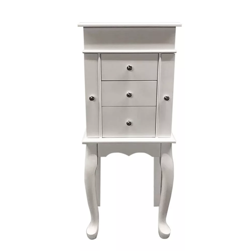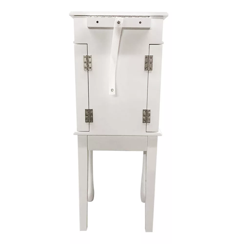 A masszív fa szerkezet biztosítja a hosszú élettartamot, míg a fekete velúr belső borítás óvja az ékszereket a karcolódástól. A klasszikus fehér szín időtálló és könnyen illeszkedik bármilyen enteriőrbe.