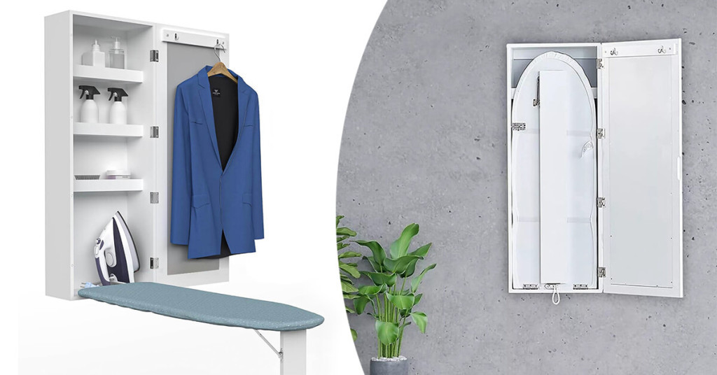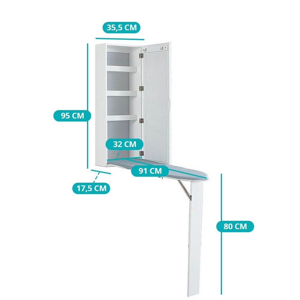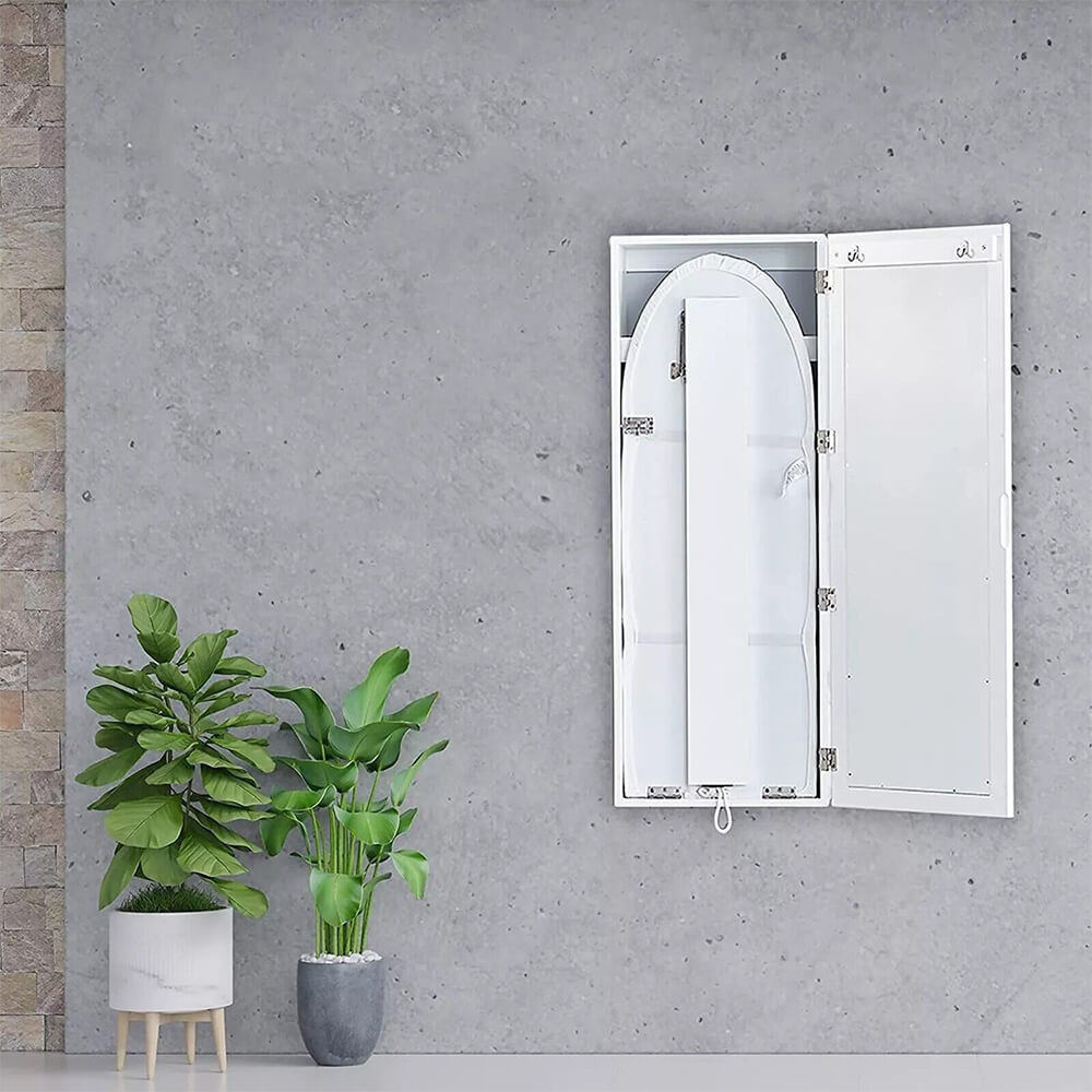 A beépített, teljes méretű 91 cm-es vasalódeszka egyetlen mozdulattal kihajtható, így pillanatok alatt használatra kész. Használaton kívül egyszerűen visszahajtható, így nem foglal el fölösleges helyet. A belső rekeszek ideálisak vasalási eszközök, ruhák vagy kiegészítők tárolására.