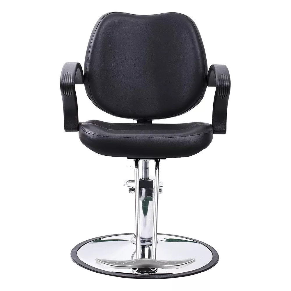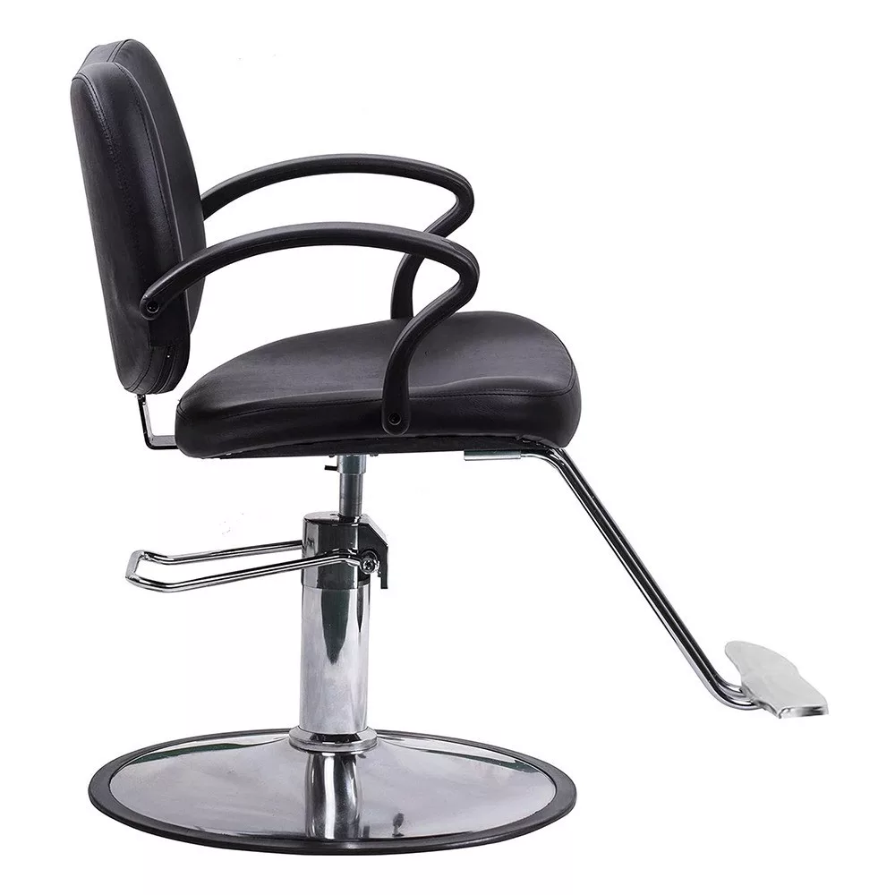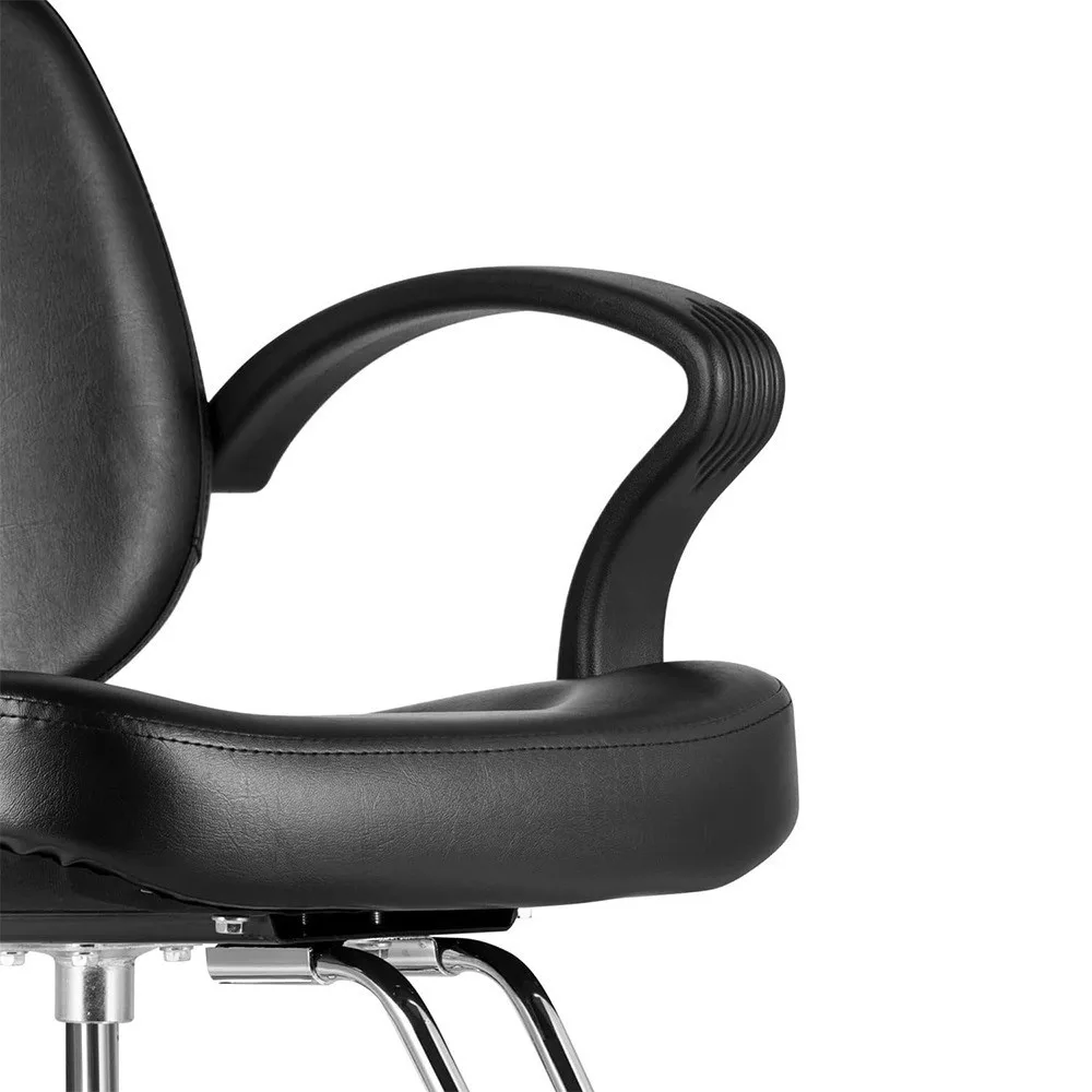 A szék masszív fémváza és műbőr borítása biztosítja a hosszú távú használhatóságot és a könnyű tisztíthatóságot. A szivacsos ülőfelület és háttámla extra kényelmet nyújt, miközben a letisztult, fekete dizájn tökéletesen illeszkedik a modern szalonok elegáns belső teréhez.
