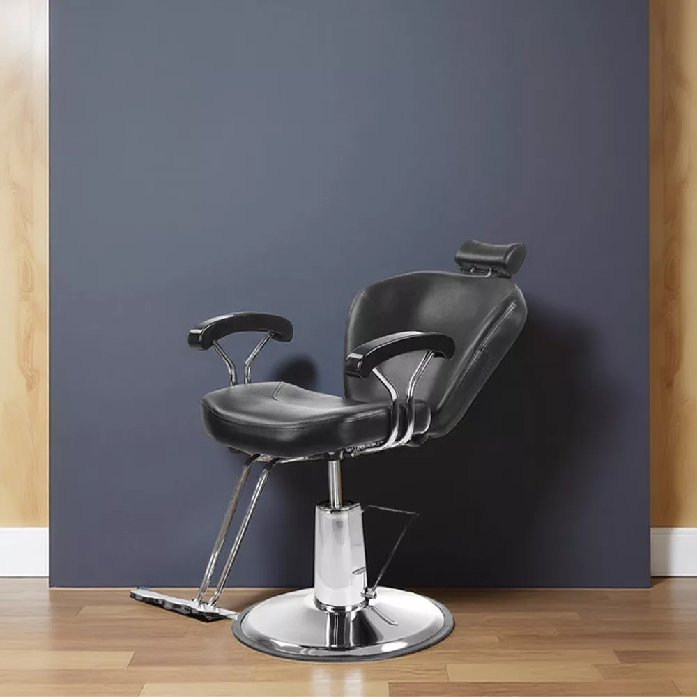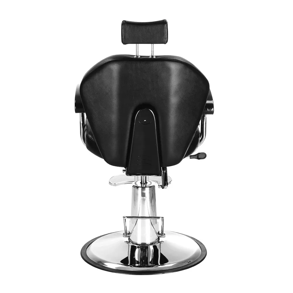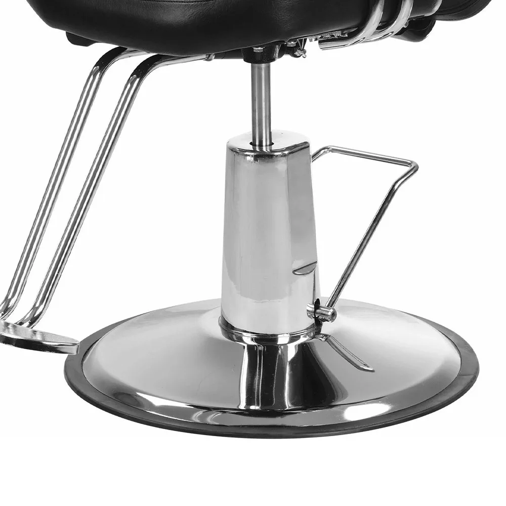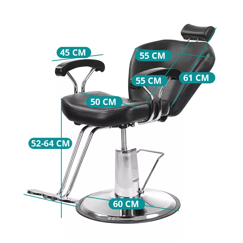A fekete műbőr kárpitozás elegáns megjelenést biztosít, miközben könnyen tisztítható. Tökéletesen illeszkedik modern barber és fodrászszalonok hangulatához.