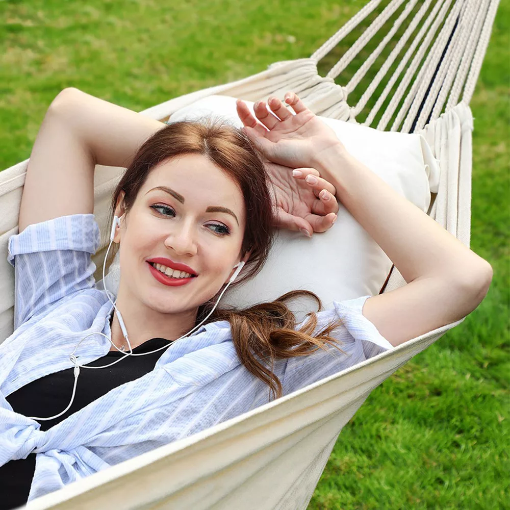 A levehető kialakításnak köszönhetően a függőágy könnyen szállítható, így ideális kempingezéshez vagy nyaraláshoz is.