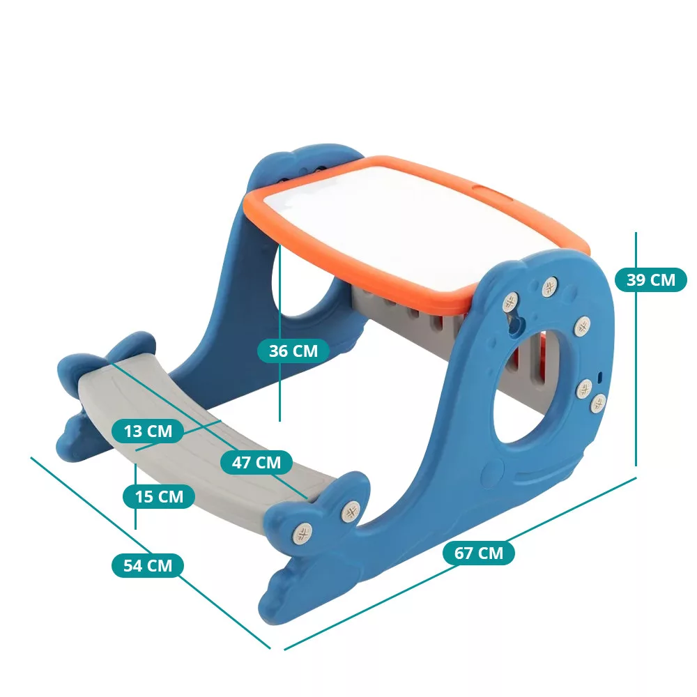 A bálna alakú oldalrészek és a kék-narancs színpár könnyen megszeretteti a gyerekekkel az asztalt. A felülete sima, a sarkok lekerekítettek, így kellemes hozzáérni, és a mindennapi tisztítás is egyszerű.
