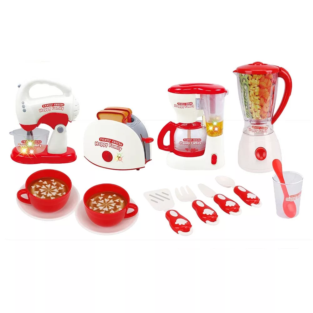Ez a szett tökéletes választás, ha gyermeked imádja a konyhában zajló tevékenységeket utánzni. A 4 db háztartási kisgép – kenyérpirító, turmixgép, kávéfőző és habverő – élethű hang- és fényhatásokkal kelti életre a játékot, ezzel igazán izgalmassá téve a konyhai szerepjátékokat.