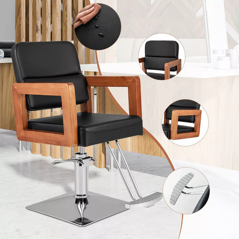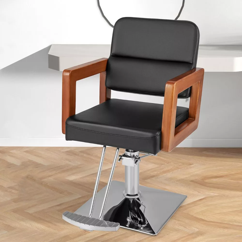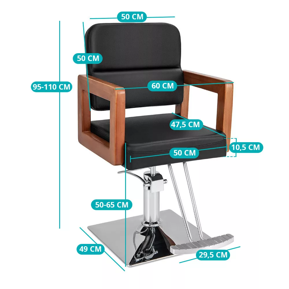 A magas sűrűségű szivaccsal töltött ülőrész és háttámla hosszabb ideig tartó ülés esetén is komfortos érzetet nyújt. A tömörfa karfák és a széles lábtámasz további kényelmet biztosítanak a vendég számára, miközben ergonomikus kialakítása megkönnyíti a fodrász munkáját is.