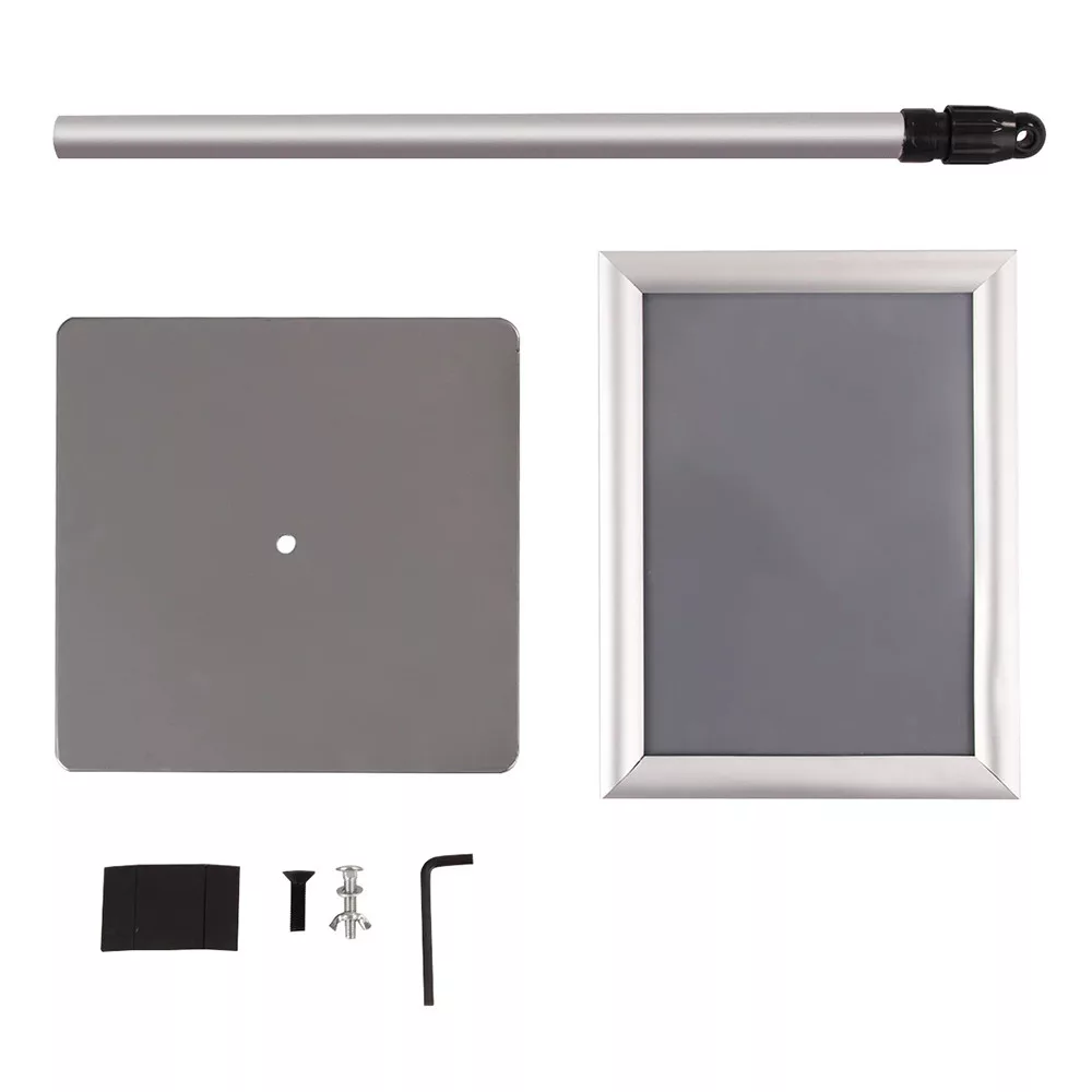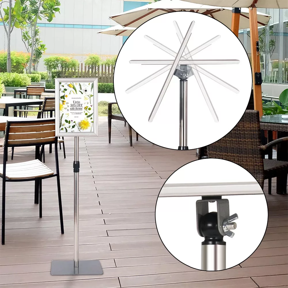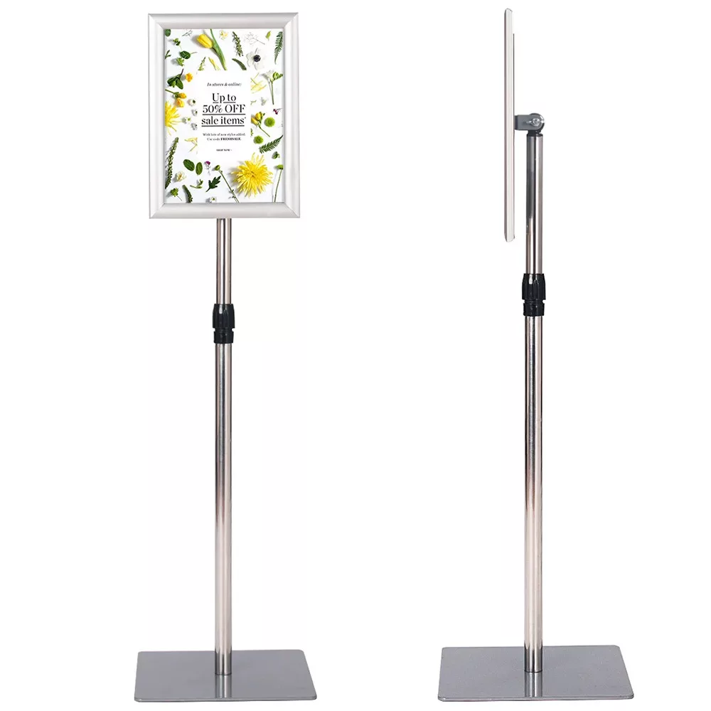 A keret 360°-ban dönthető, és elforgatható álló vagy fekvő formátumra, így bármilyen plakát vagy információs lap egyszerűen megjeleníthető. A védőfólia megóvja a behelyezett lapokat a portól és nedvességtől.
