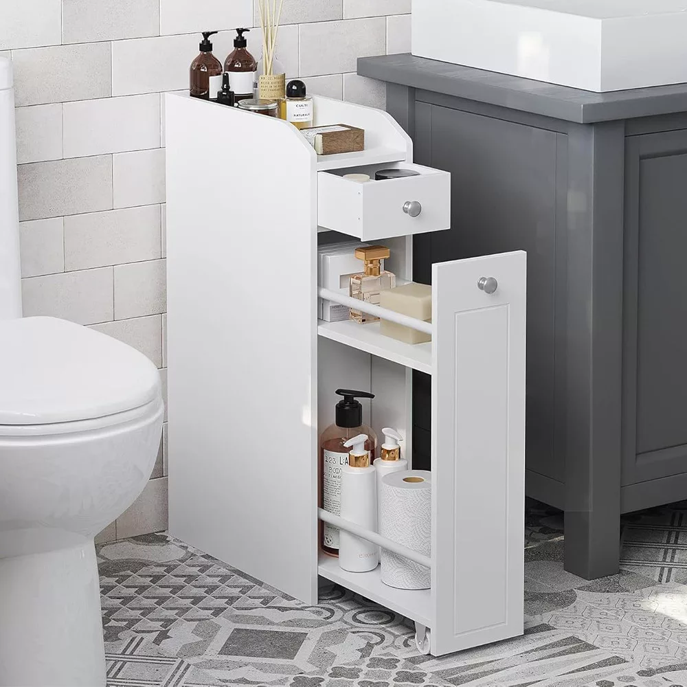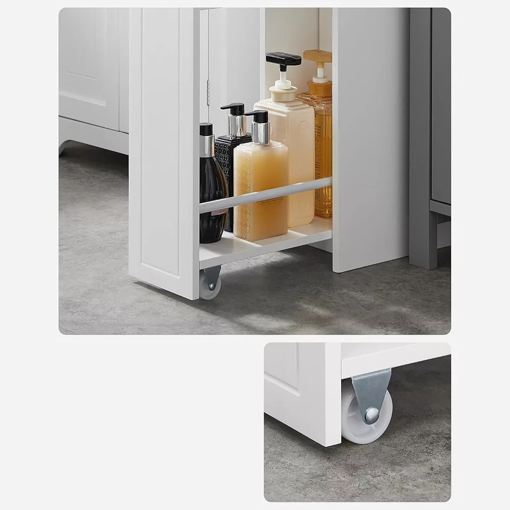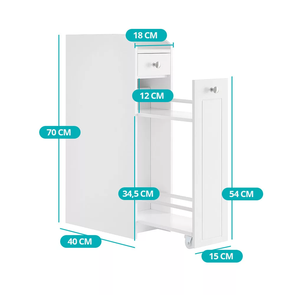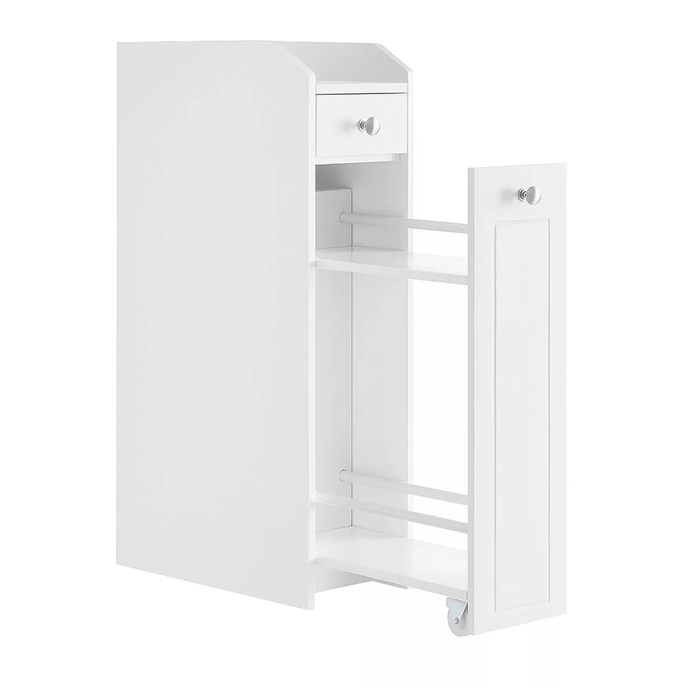 Ez a keskeny piperecikk tároló szekrény tökéletes megoldás, ha a fürdőszobádban vagy konyhádban minden centiméter számít. Kompakt mérete ellenére bőséges helyet kínál a mindennapi használati tárgyaknak.