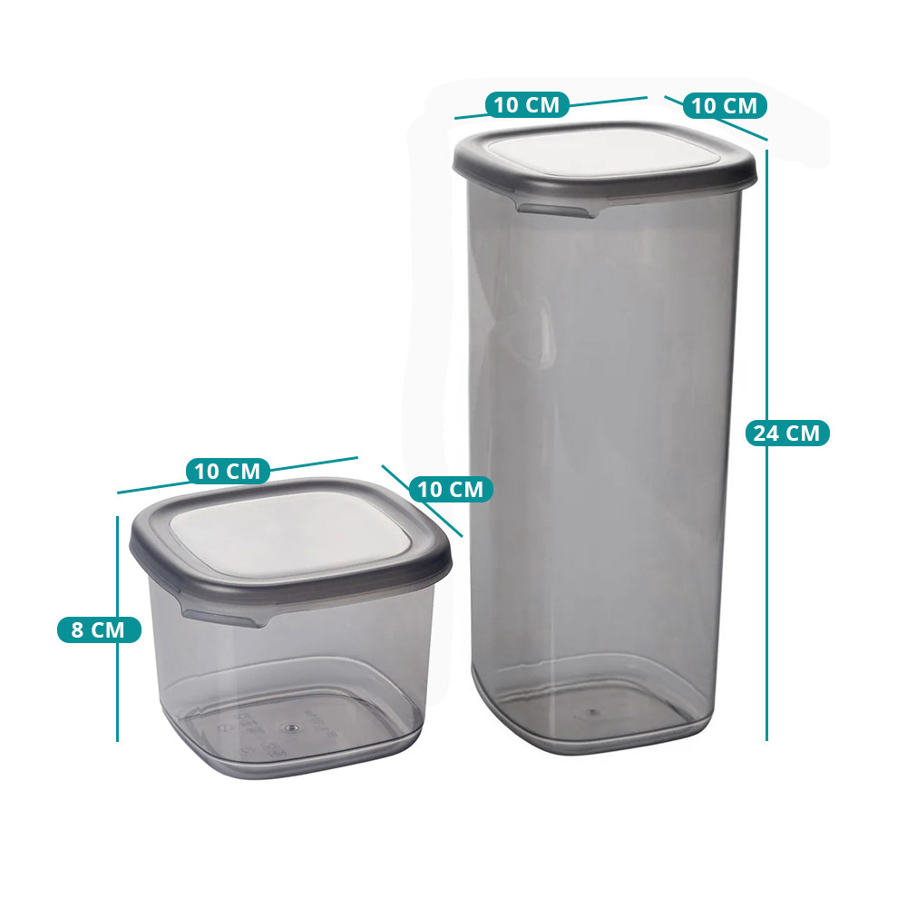 A kisebb, 550 ml-es dobozok ideálisak fűszerekhez, magvakhoz vagy kisebb mennyiségekhez, míg az 1750 ml-es változatok nagyobb adagok tárolására is alkalmasak. Egymásra helyezve helytakarékosan tárolhatók.