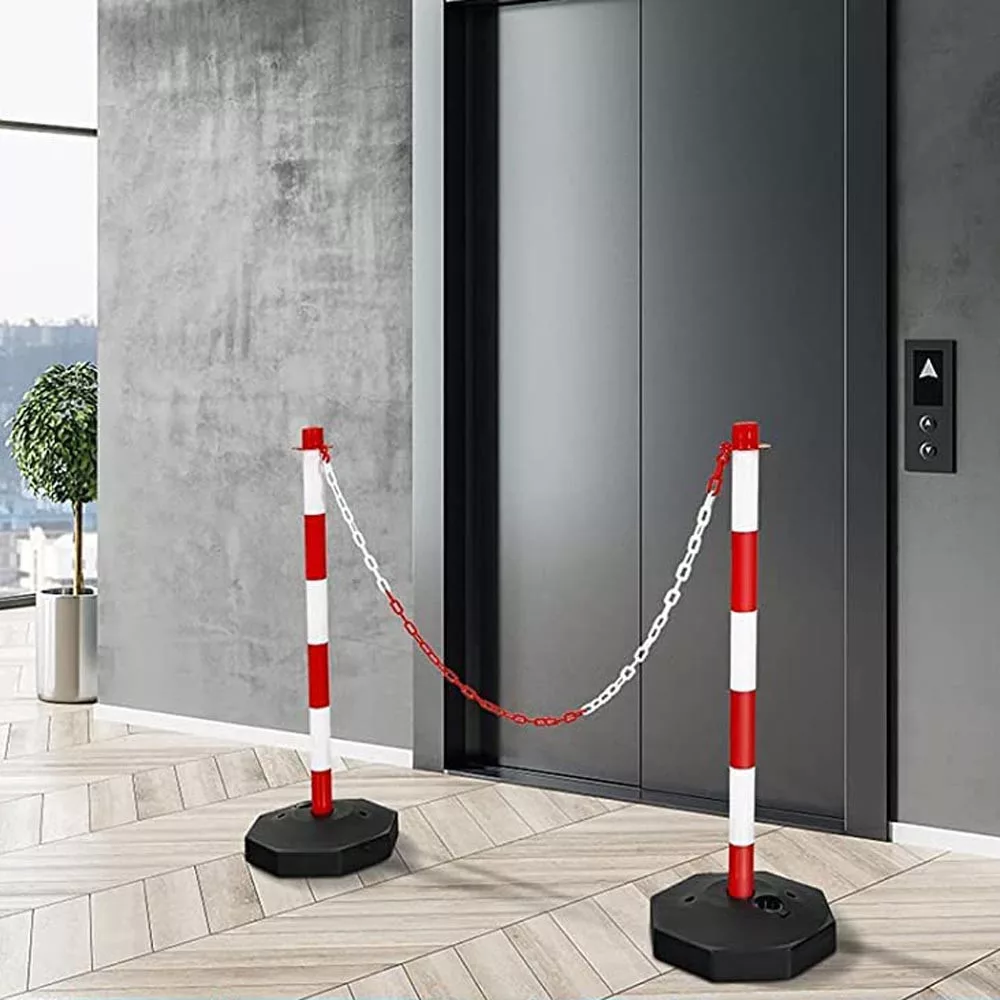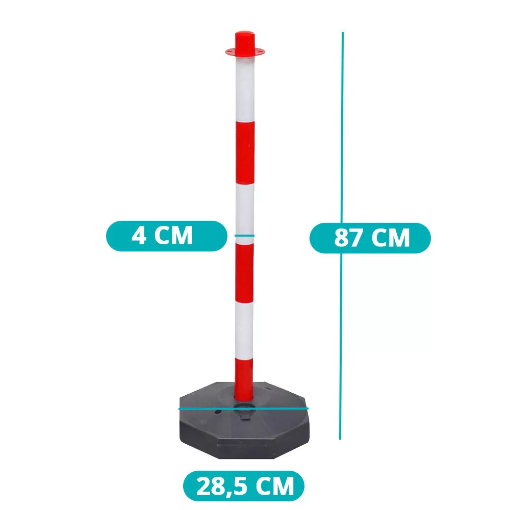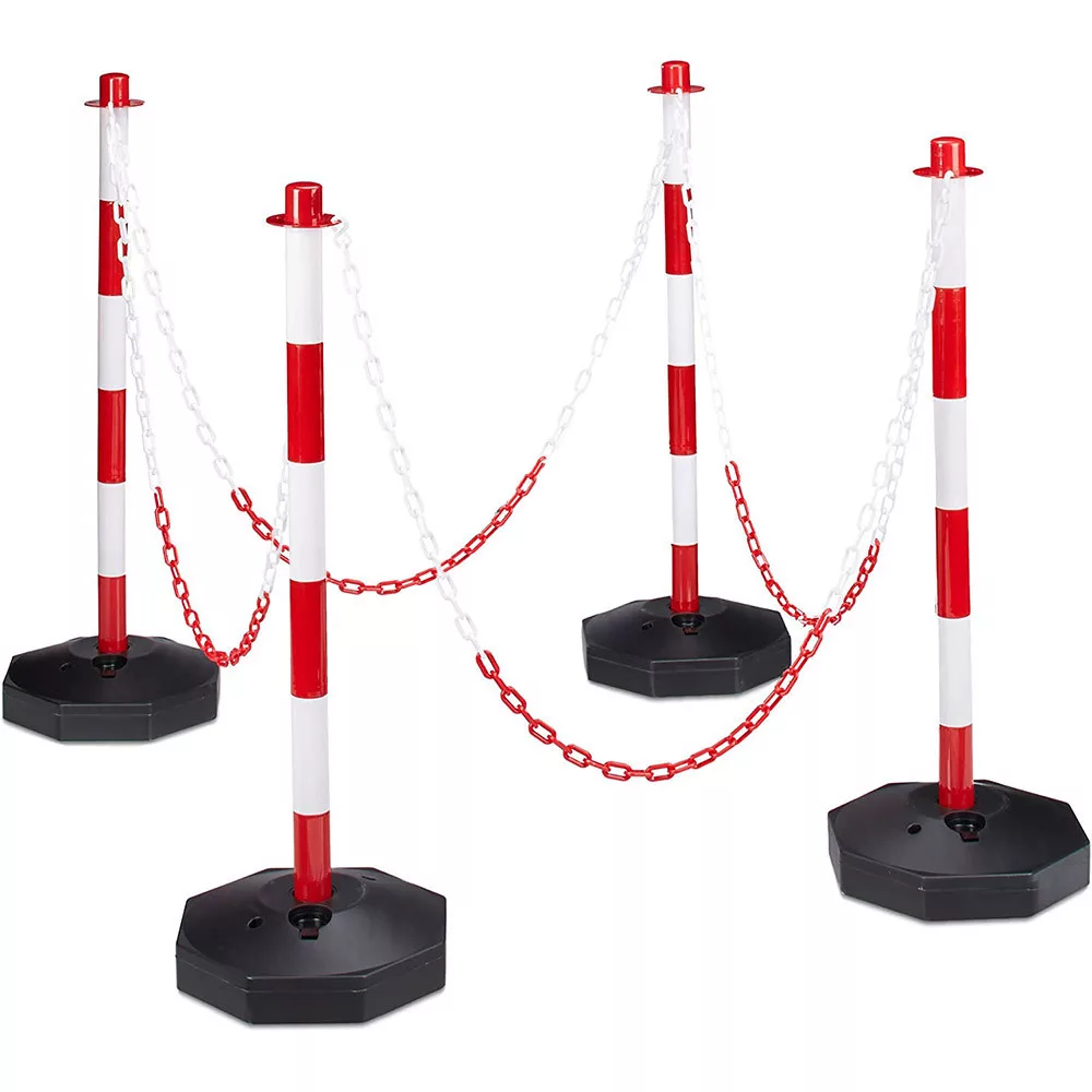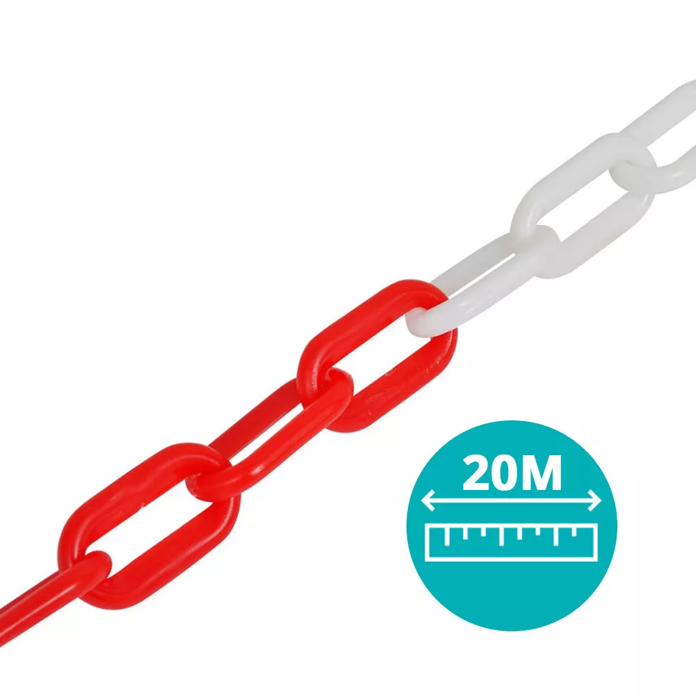A piros-fehér színű oszlopok figyelemfelkeltő kialakításuknak köszönhetően jól láthatóak bármilyen környezetben. A strapabíró műanyagból készült oszlopok és a 20 méter hosszúságú lánc hatékonyan segítenek a forgalomirányításban vagy területek elzárásában.