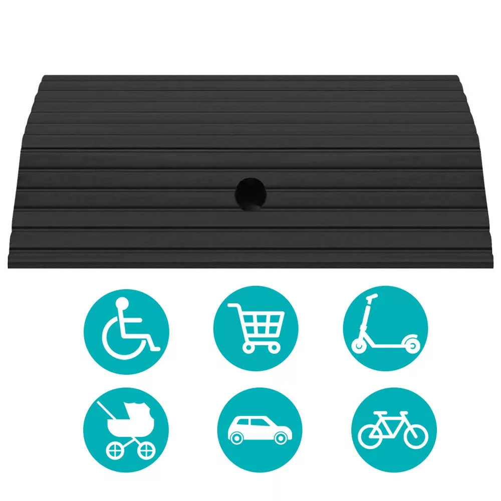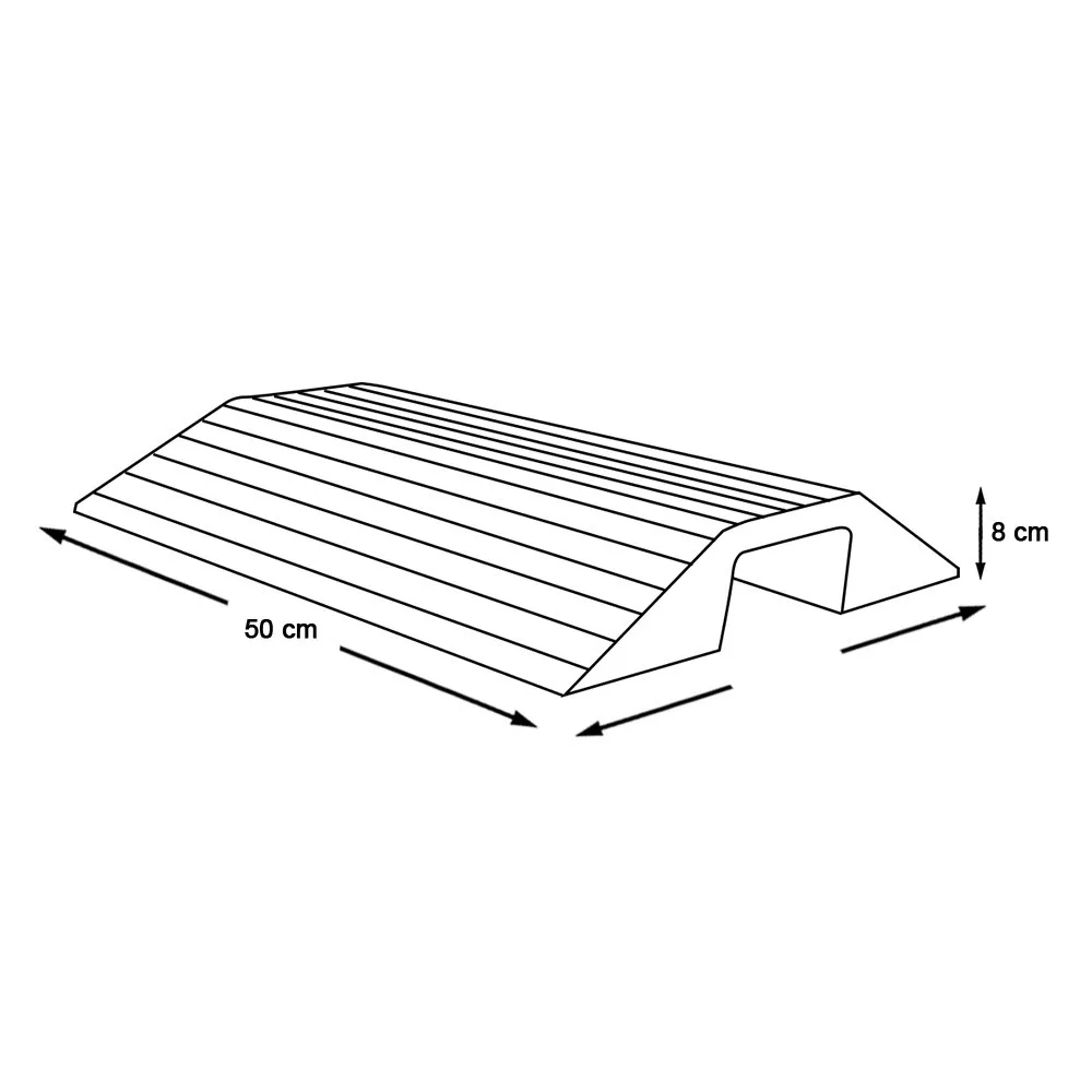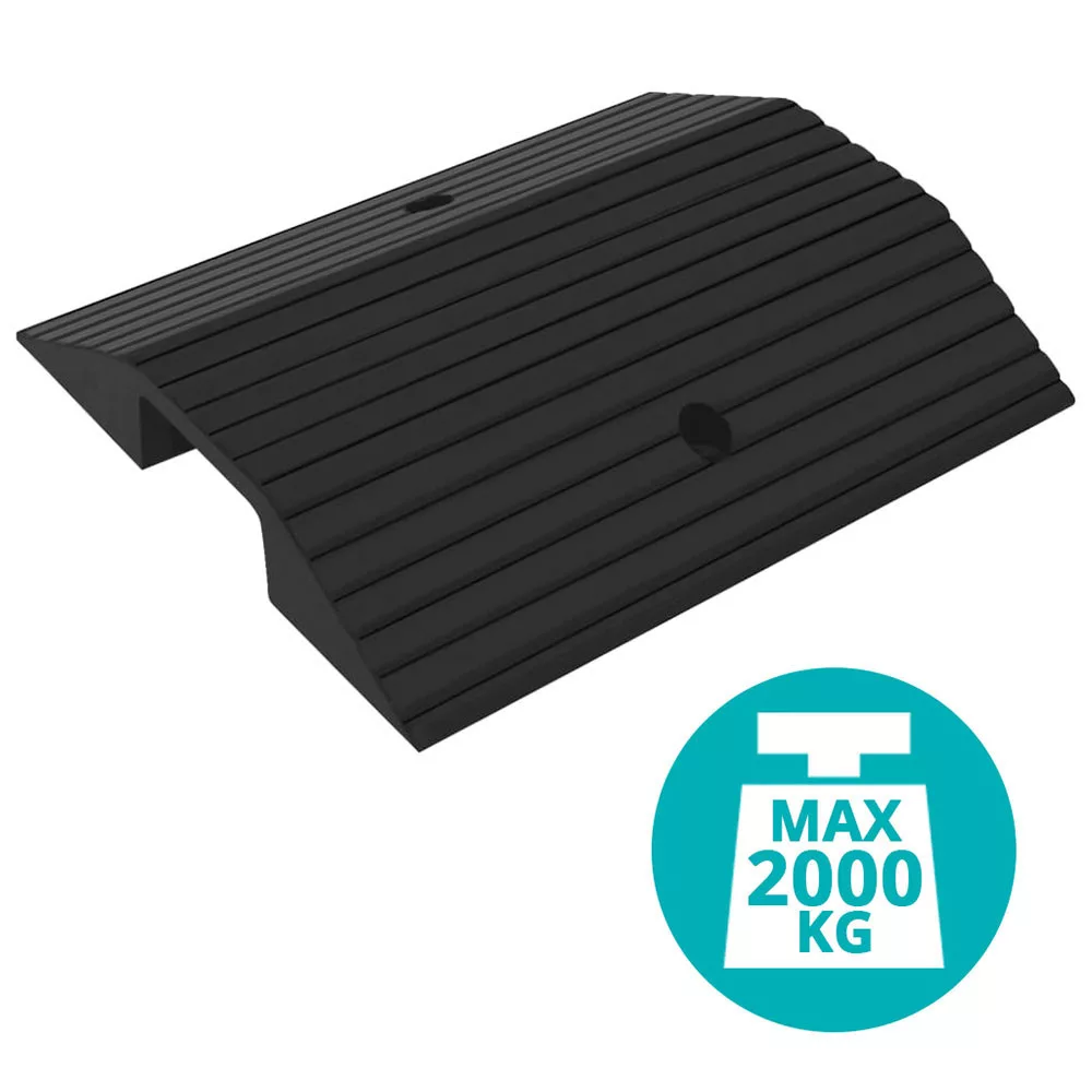 A küszöbrámpa kiválóan alkalmas vezetékek, kábelek és kiálló szegélyek takarására, védelmére, valamint járművek zökkenőmentes áthaladására. Használható ipari környezetben, garázsokban, raktárakban és egyéb forgalmas helyszíneken, ahol elengedhetetlen a stabil és biztonságos átjutás.
