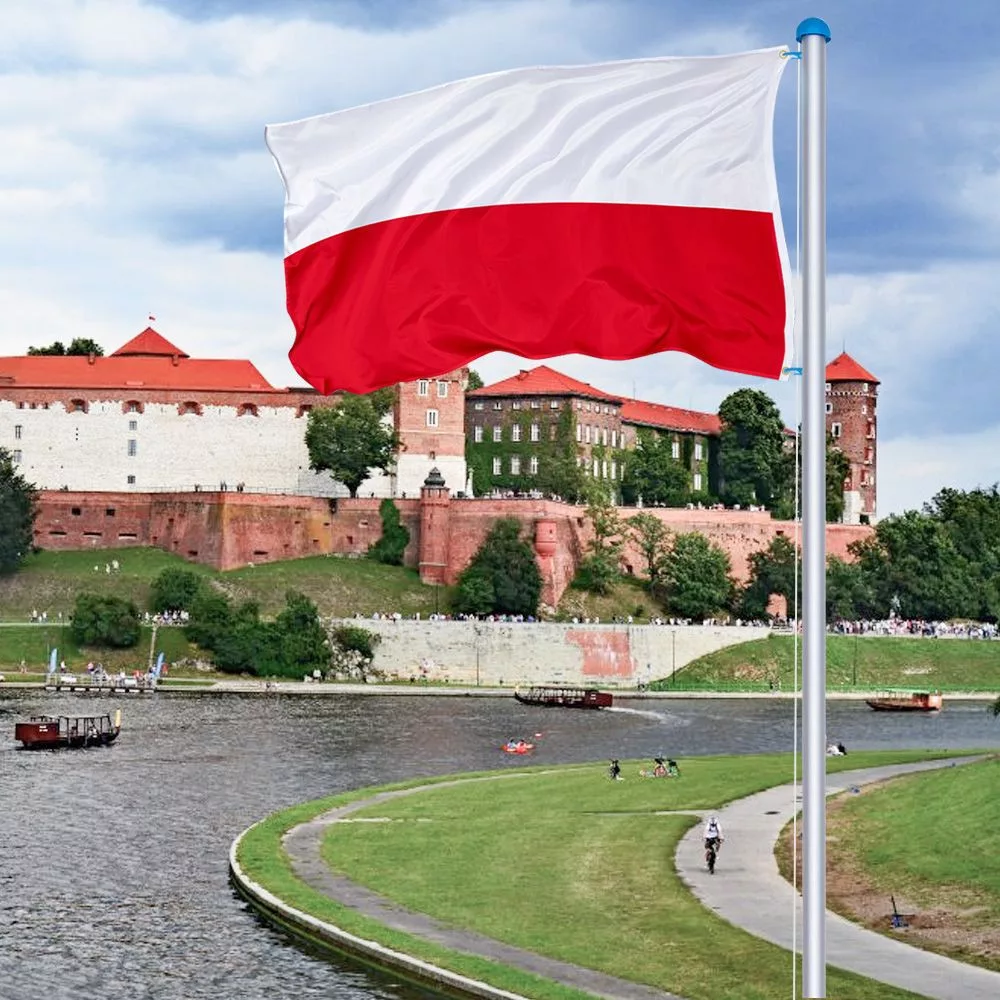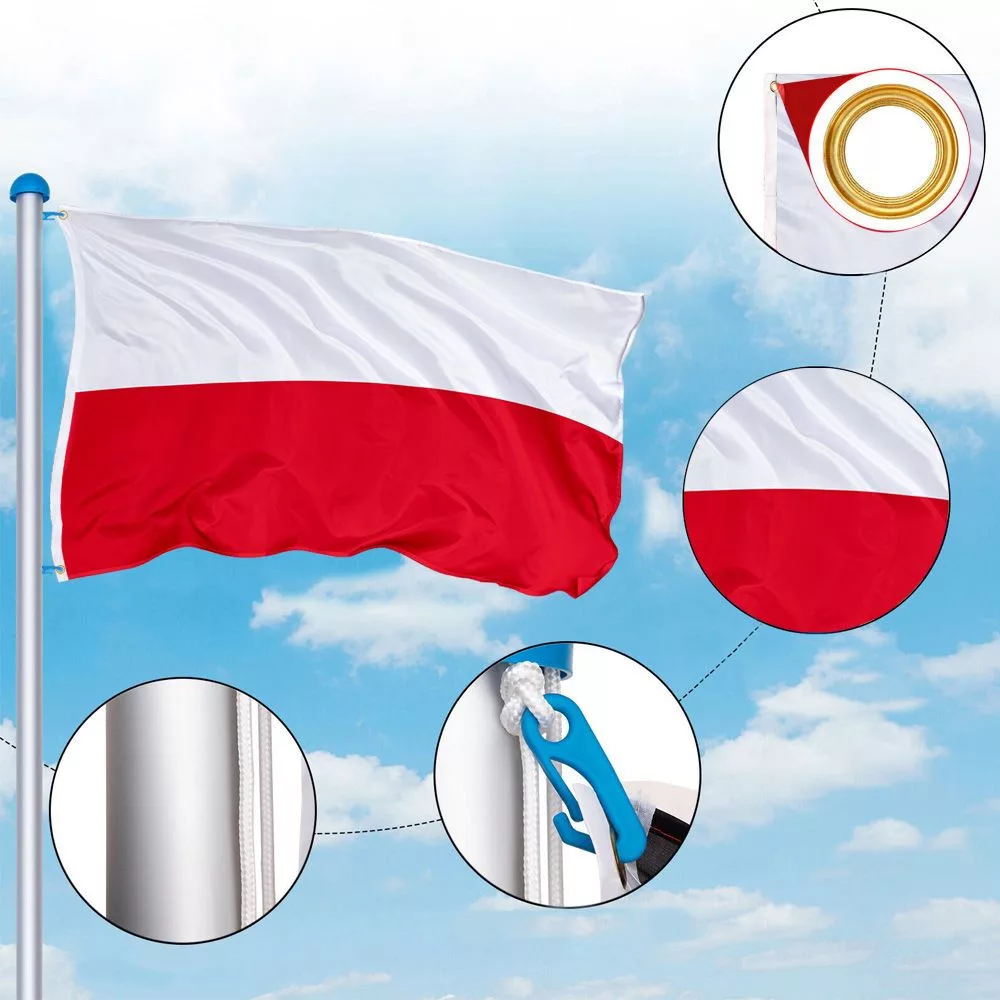 A zászló mindkét oldalán élénk színekkel van nyomtatva, így bármely irányból jól látható. A megerősített szegélyek és beépített fém ringlik még szeles időjárásban is megbízható rögzítést biztosítanak.