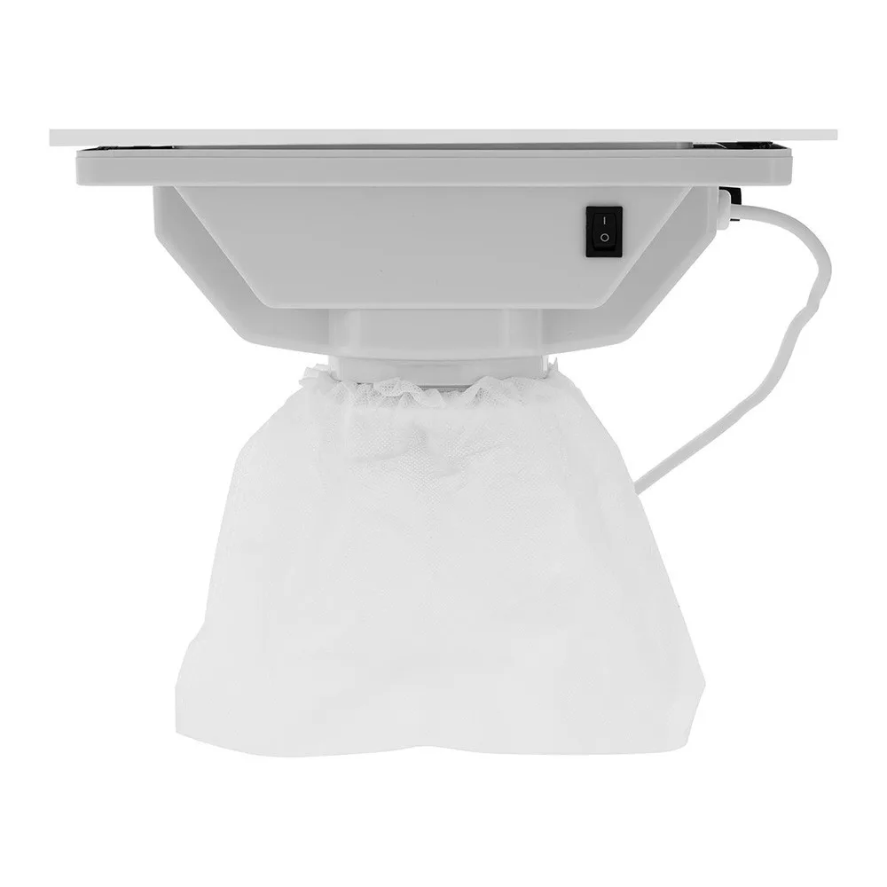 A 6 W teljesítményű elszívó a körömreszelés során keletkező port hatékonyan összegyűjti. A 14x22 cm-es rács ergonomikusan illeszkedik az asztallapba, biztosítva a zavartalan munkavégzést.