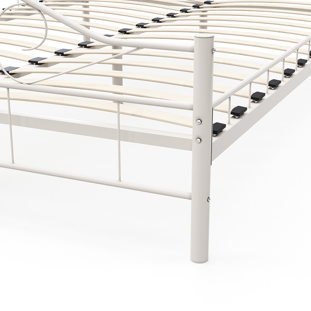 A masszív fémből készült ágykeret kiváló stabilitást és hosszú élettartamot biztosít. A középső hosszanti merevítés megerősíti az ágy tartását, így nyugodt, pihentető alvást garantál.