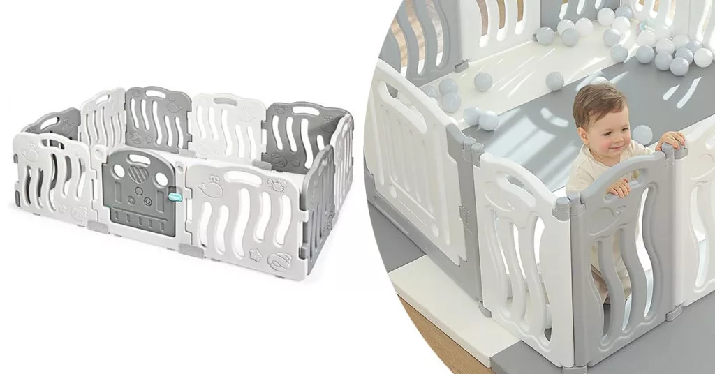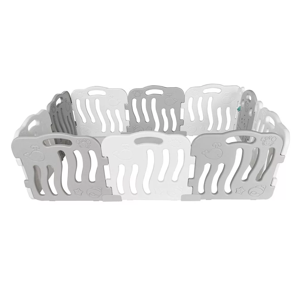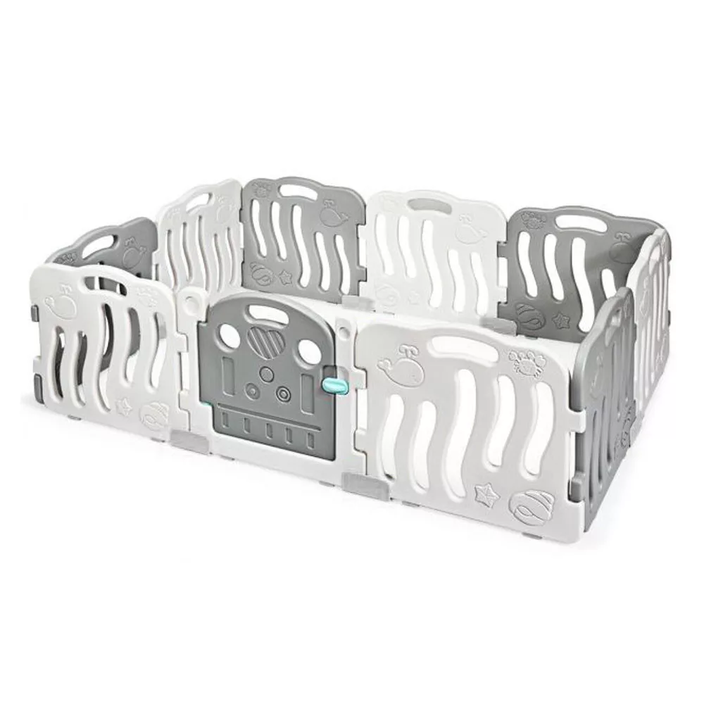 A tíz elem által kialakított babakarám tágas, kényelmes játékteret biztosít, amelyben a gyermek szabadon és biztonságban mozoghat. A színes és játékos dizájn fejleszti a gyermekek vizuális érzékeit és kedvet csinál a játékhoz.