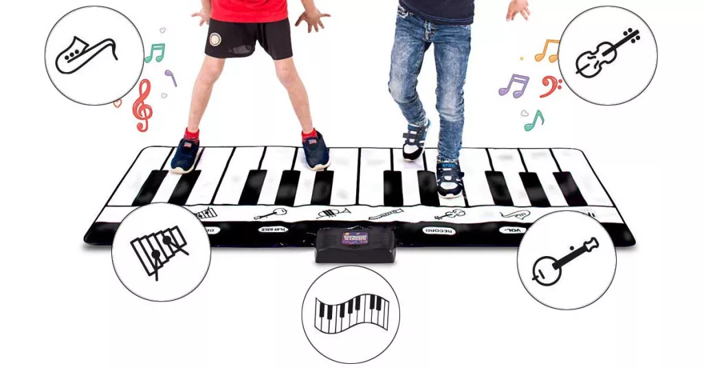 A nyomásérzékelős billentyűk kézzel és lábbal egyaránt működtethetők, így a gyermekek szó szerint táncolhatnak a dallamokon. A nagy méretű szőnyeg (180 x 74 cm) elegendő helyet biztosít arra, hogy egyszerre több gyermek is élvezhesse a zenélés örömét.