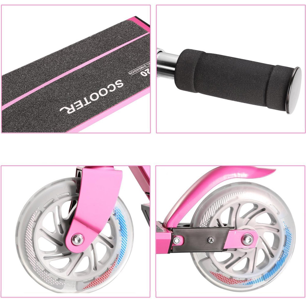 Összecsukható alumínium LED világító kerekű gyermek roller rózsaszín