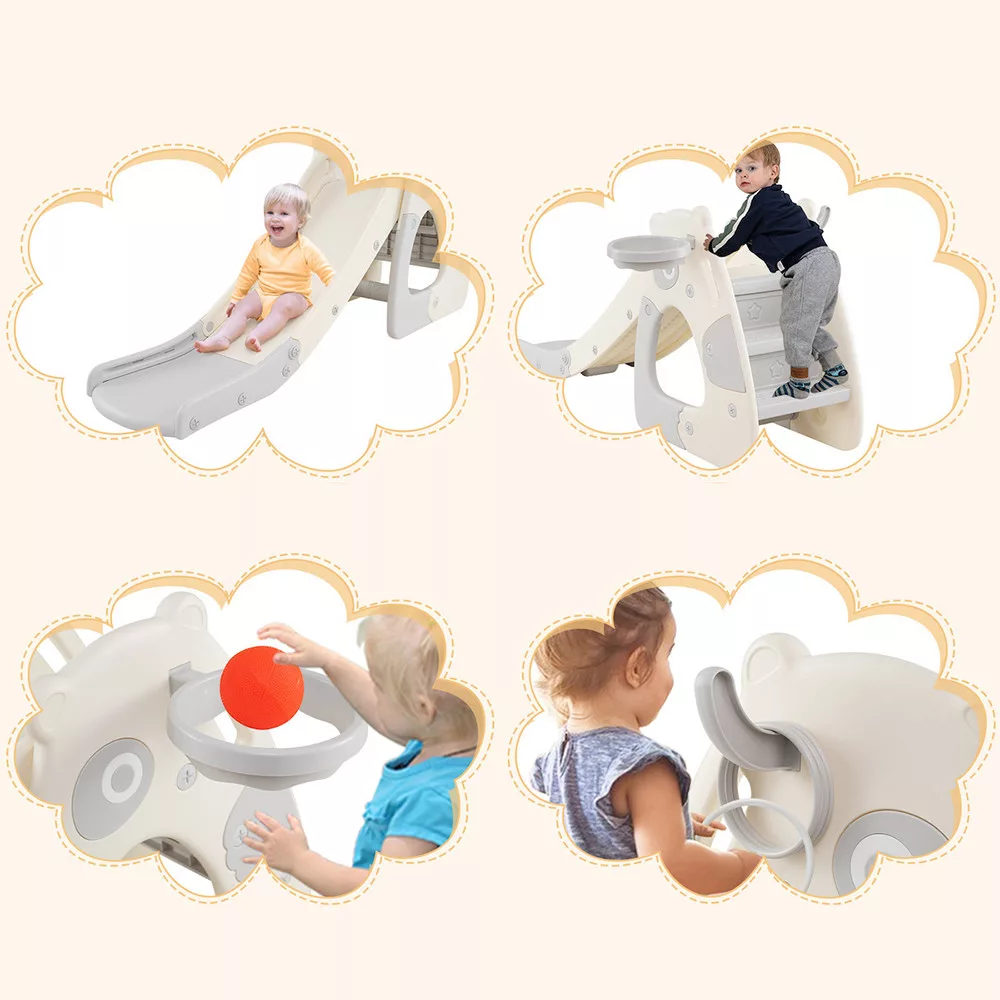 Ez a 4 az 1-ben játékcsúszda csúszást, mászást, kosárra dobást és gyűrűdobálást kínál egyetlen eszközben. A változatos mozgásformák segítenek levezetni a felesleges energiát, miközben a játék végig élvezetes marad.