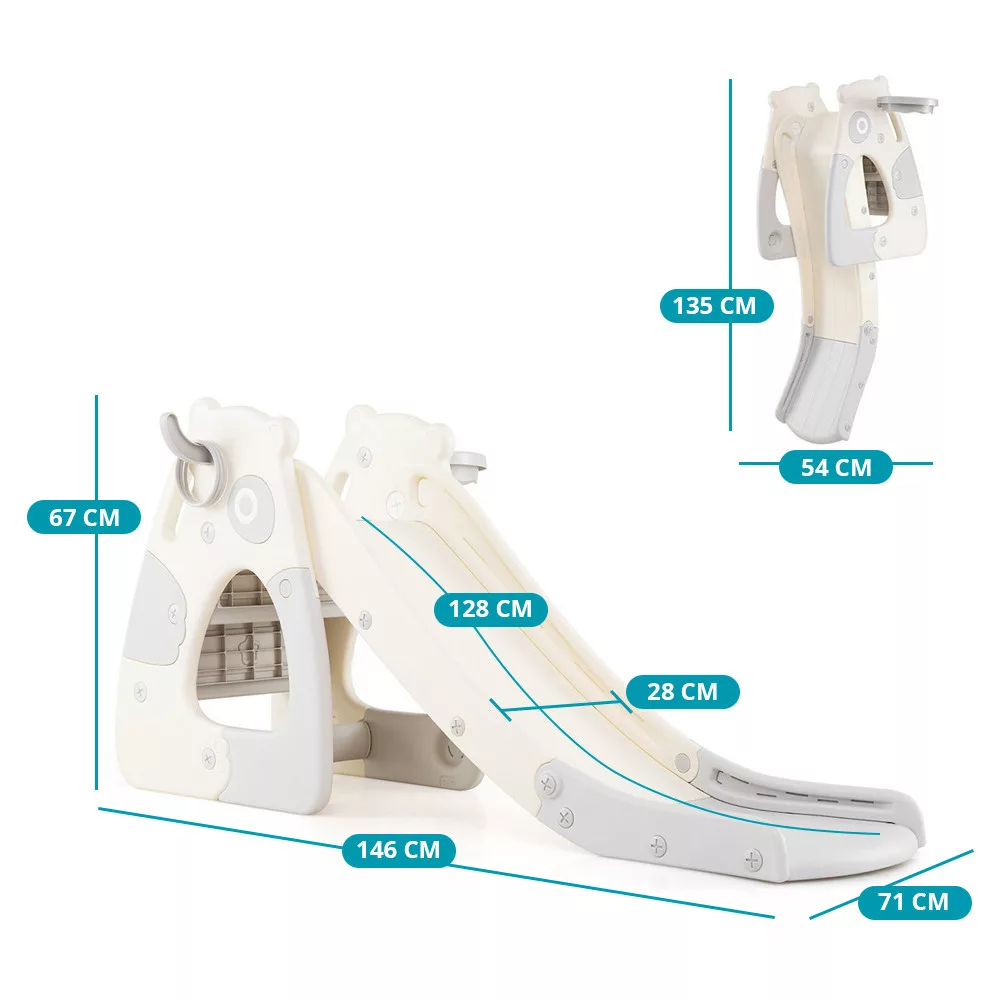 - 4 az 1-ben funkció: csúszda, mászó, kosárpalánk, gyűrűdobáló