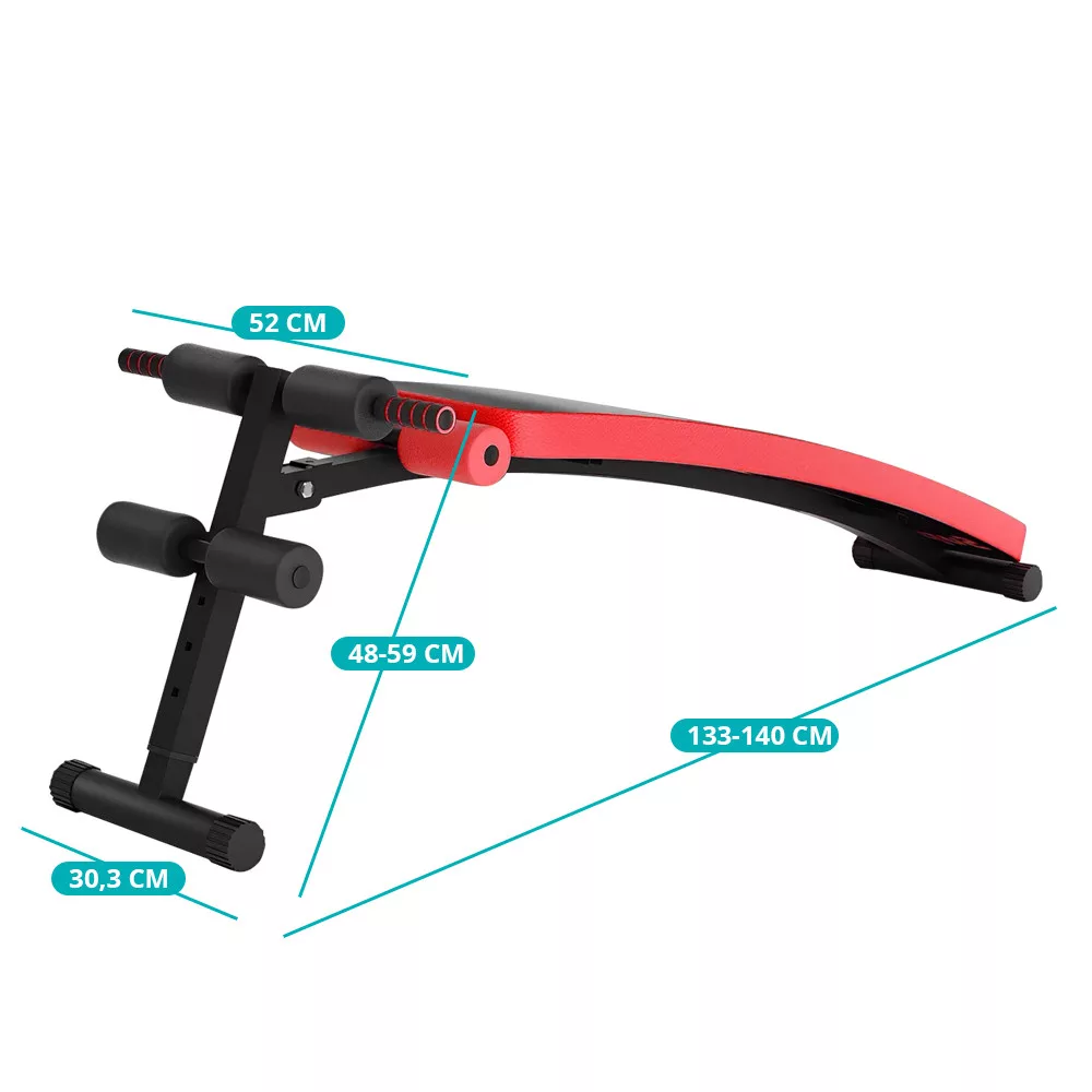 A PU bőrrel bevont háttámla csúszásmentes, kopásálló és jól szellőzik. A habszivacs párnázás és a széles fekvőfelület kényelmes támaszt nyújt, míg a hat szivacsos lábrögzítő stabil pozíciót biztosít az edzés során.
