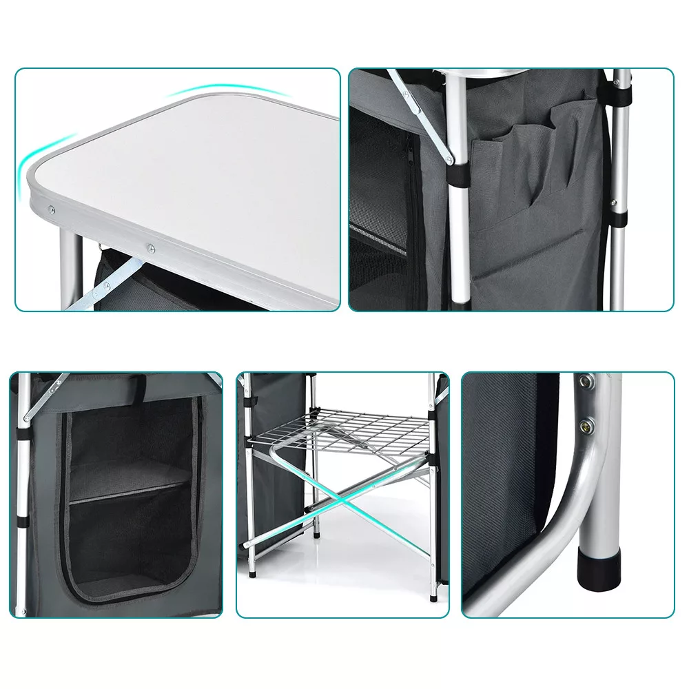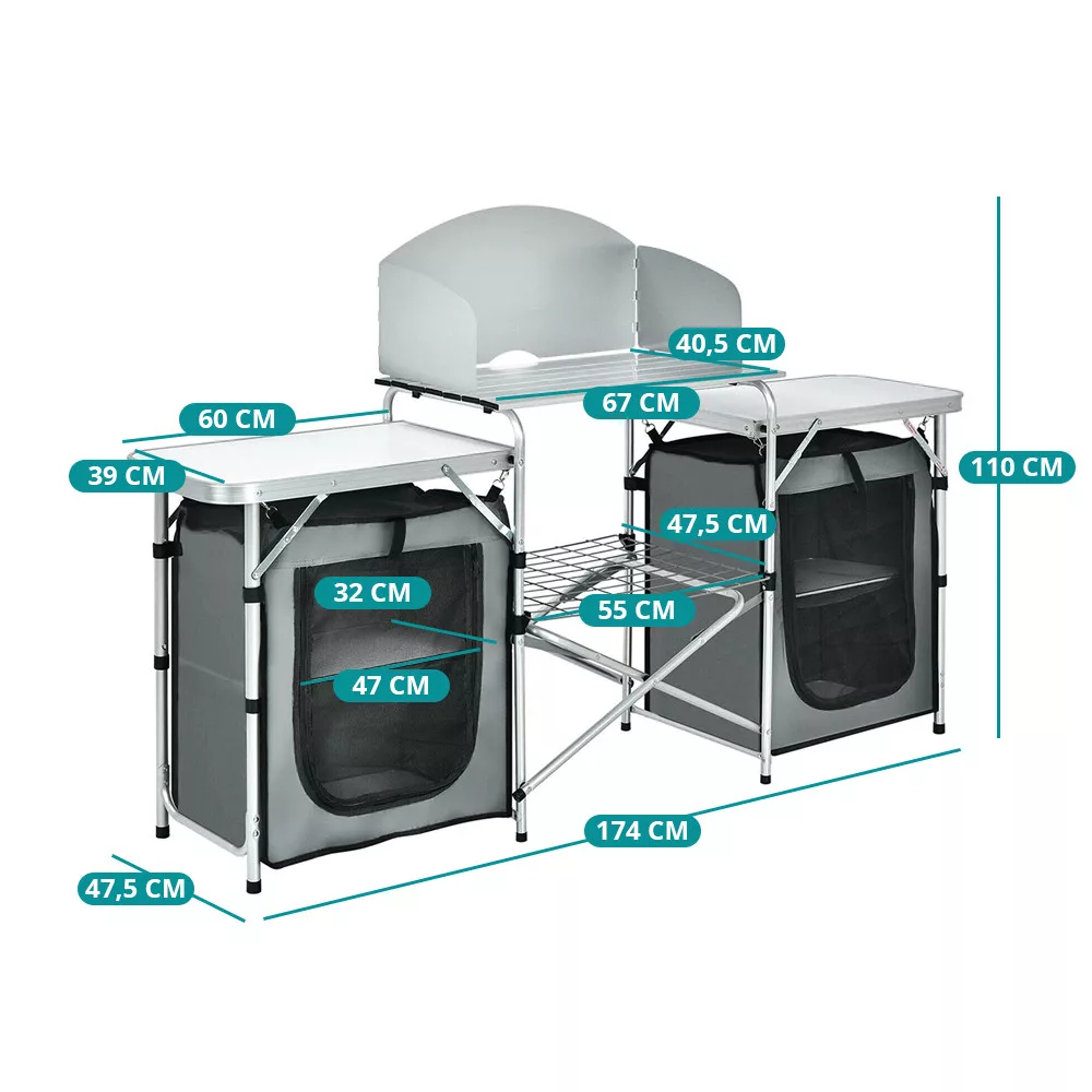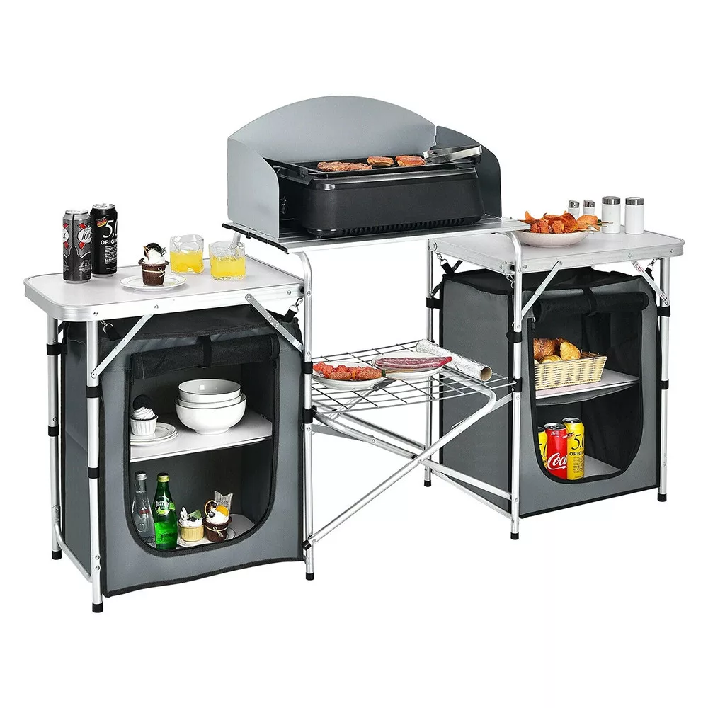 - Összecsukható kempingkonyha tárolórendszerrel