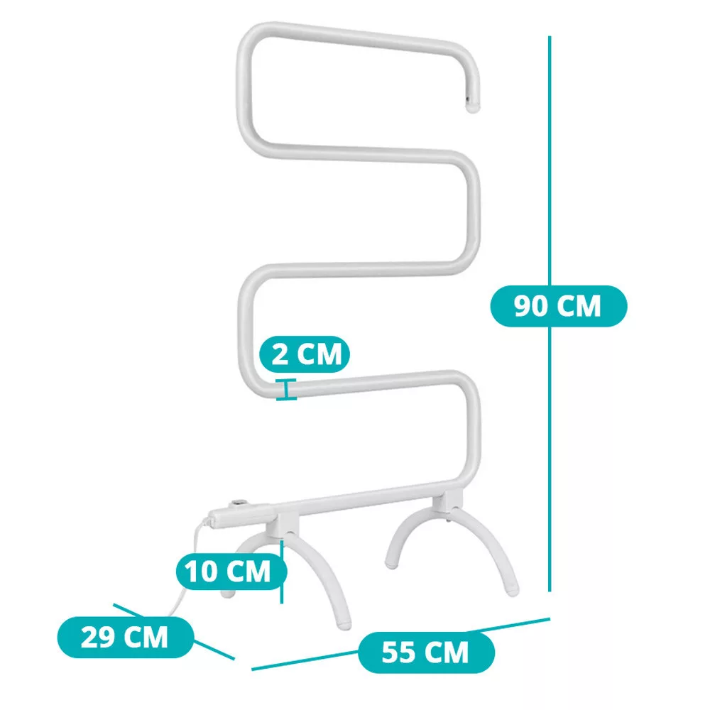 A törölközőszárító manuális ki- és bekapcsolóval rendelkezik, így pontosan akkor használható, amikor szükség van rá. Hálózati csatlakozással működik, így nincs szükség fürdőszobai beépítésre. A falra rögzíthető kialakítás stabilitást biztosít, a csomagban található összes szükséges alkatrész megkönnyíti a felszerelést.