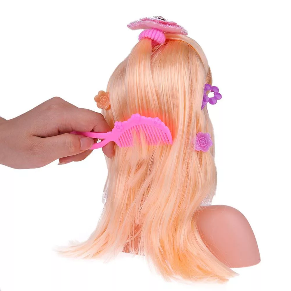 Ebben a szettben mindent megtalál, mely szükséges a baba frizurájának és sminkjének elkészítéséhez. A baba haja könnyen fésülhető és kezelhető a lehető legélethűbb játék élmény érdekében. Fonhatja, csinálhat különböző frizurákat és kontyokat is melyeket hajcsatokkal és hajgumikkal összefoghat. A csomag tartalmaz fésűt, különböző színes hajgumikat és hajcsatokat valamint a sminkeléshez egy 6 színből álló szemfesték palettát, rúzst és egy szivacsos applikátort is. A színes hajtincsekkel változatos frizurákat készíthet.