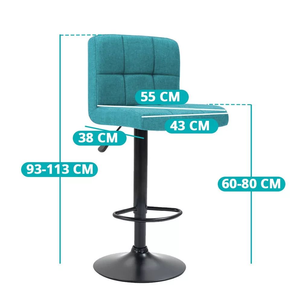 Dobd fel otthonod vagy üzleted eleganciáját ezzel a luxus kialakítású, szövet borítású bárszék szettel! Az állítható magasság (60-80 cm), a párnázott ülőfelület és a stabil szerkezet maximális kényelmet nyújt hosszabb étkezésekhez vagy társas összejövetelekhez. Modern és letisztult formatervezése bármilyen enteriőrbe tökéletesen illeszkedik, míg a könnyen tisztítható anyag gondtalan használatot biztosít.