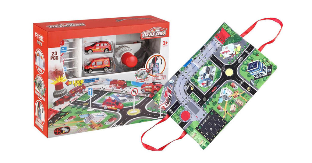 A szőnyeg kialakítása lehetővé teszi, hogy a gyerekek elmerüljenek egy izgalmas városi kalandban. A mellékelt gomb segítségével kilőhetik a tűzoltó autót, amely a kijelölt útszakaszon száguld végig, így még élvezetesebbé téve a játékot.