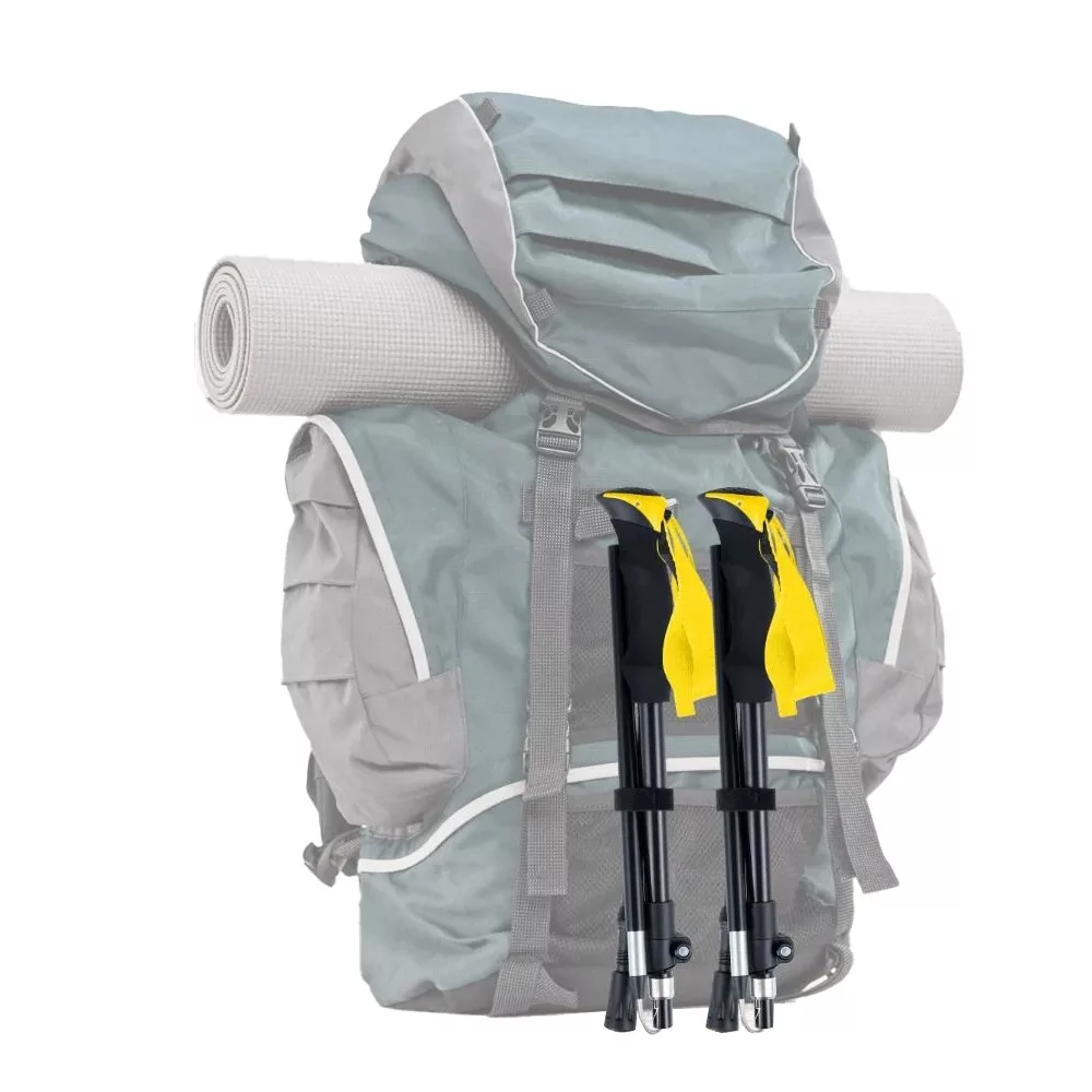 A fekete-sárga szín összeállítás jól látható és praktikus a természetben. Az alumínium szár és a letisztult forma strapabíró, „túracucc” érzetet ad, ami jól passzol hátizsákhoz és bakancshoz is.